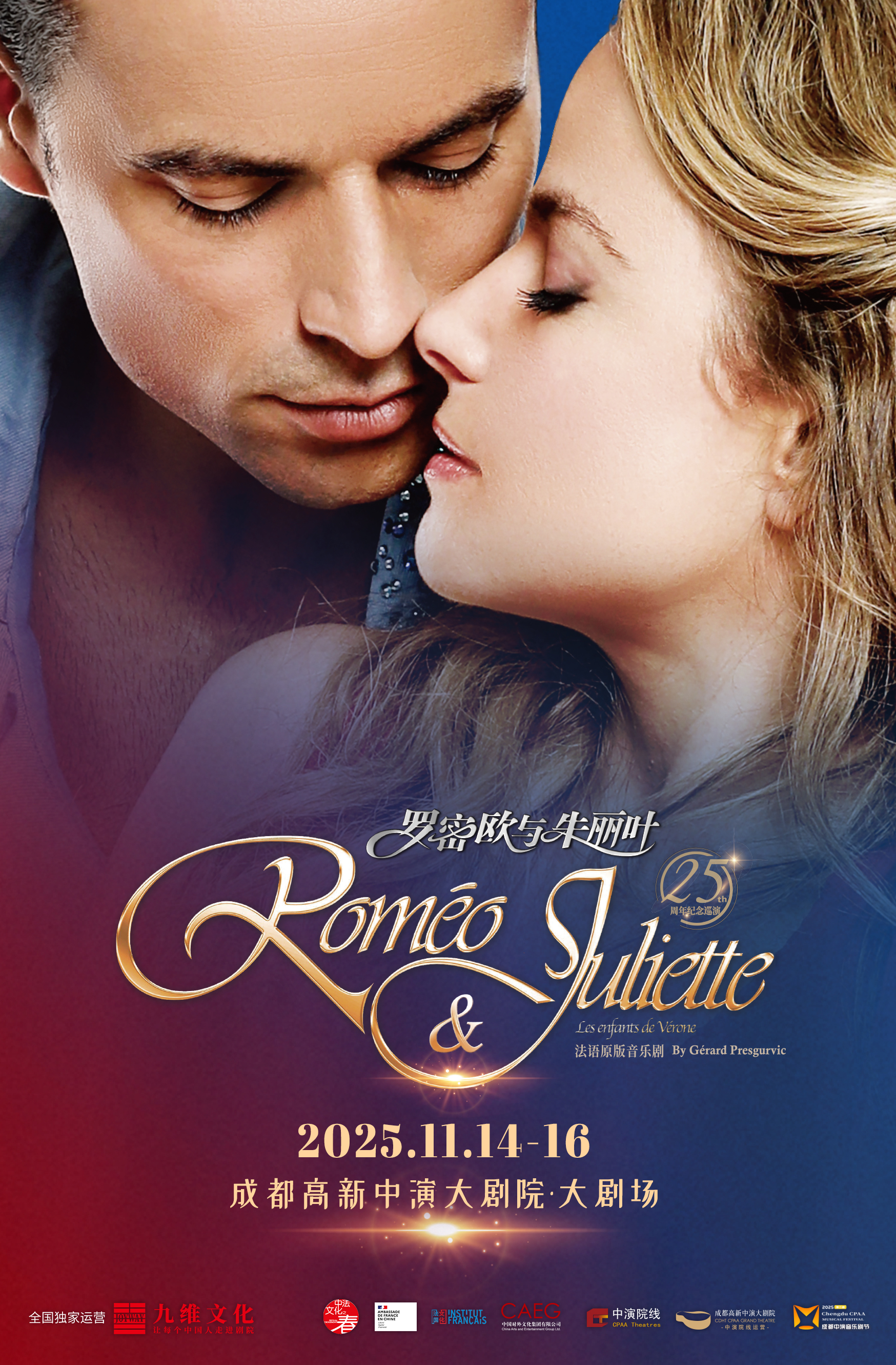 该剧改编自莎士比亚经典戏剧,自2001年首演以来,以唯美的舞台设计、动人的旋律与震撼的群舞征服全球观众,与《悲惨世界》《巴黎圣母院》并称“法国三大音乐剧”。作品以现代视角诠释古典爱情悲剧,展现爱与命运的永恒冲突,至今已巡演41个国家。
