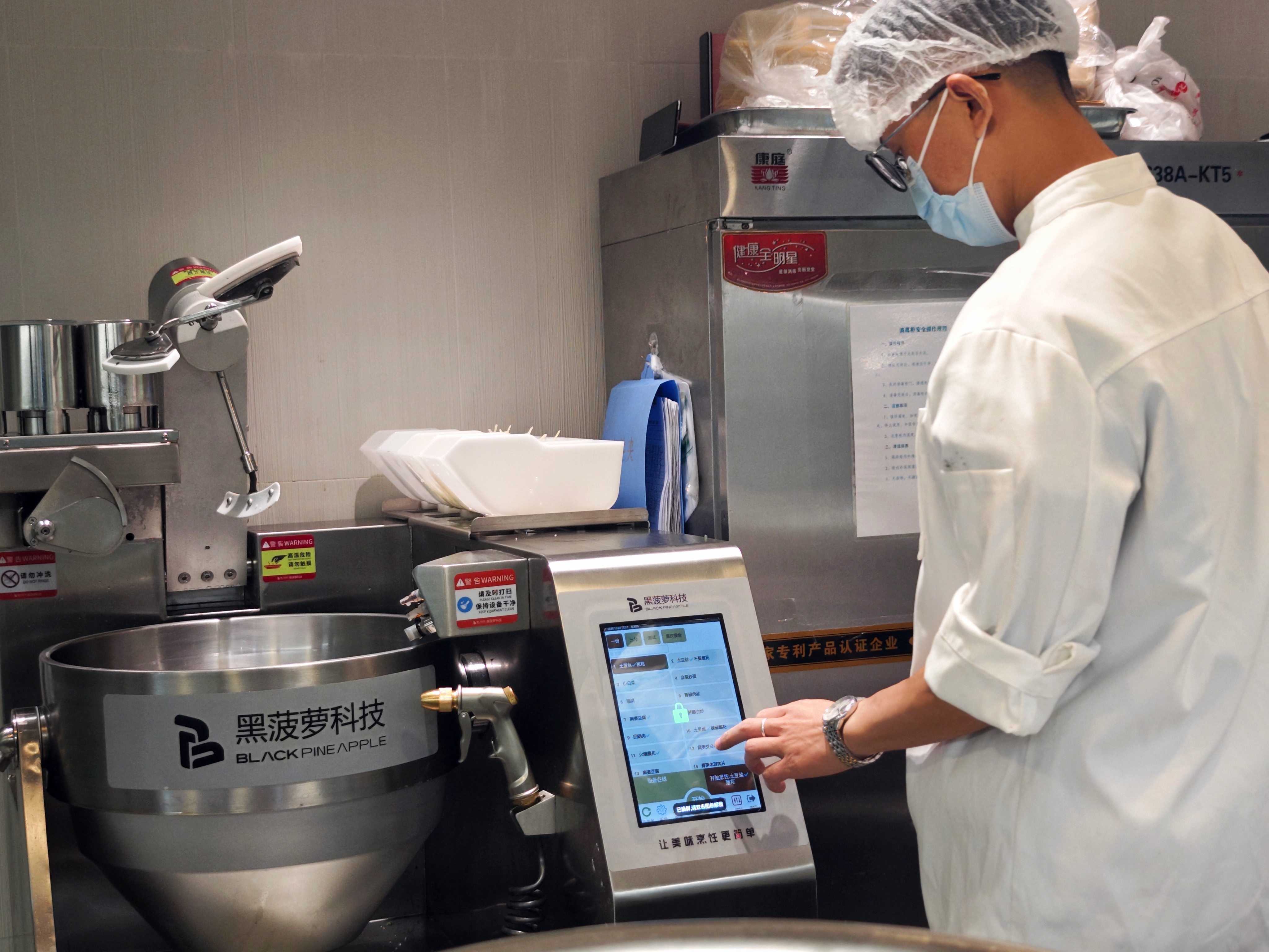 “自动投料系统就是造就机器人‘大厨’的工作指南。这套系统严格遵循预设程序,定时定量投放食材、油料及调料,从源头保障菜品口味的稳定性与一致性。”黑菠萝公司相关负责人介绍说,炒菜机器人不仅是一个炒菜工具,更是一个全能厨师,其系统内置了200余道公共菜谱,既能做出美味可口的美食,更能保证老年人餐食的适口性与营养性,实现了从“吃得饱”到“吃得好”的升级。比如,针对老年人需要软烂、易消化的食物,机器人通过电磁感应加热,可以精准控制火候与烹饪时长,轻松实现将菜肴烹制得入口即化,从而满足老年人的饮食需求。
