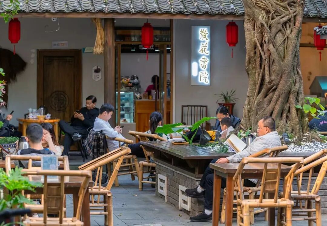 散花书院的名字,源自隋唐时期成都四大名楼之一的“散花楼”。李白曾挥毫写下“日照锦城头,朝光散花楼”的诗句,让这座社区里的书院,从名字开始就自带文化古韵。