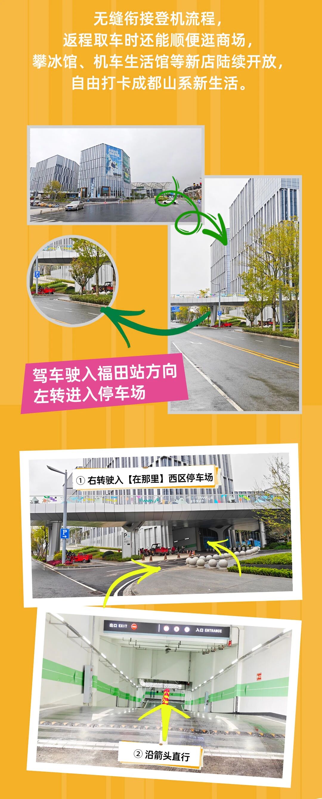 据了解,“在那里·福田TOD”区位优势突出,交通衔接高效。市民驾车导航至“在那里·福田TOD”,按指引驶入西区停车场后,从4号楼出站沿一楼直行,即可抵达福田地铁站A口,乘坐18/19号线(往天府机场北方向)约5分钟便能直达天府机场站,地铁班次密集,可无缝衔接登机流程。返程时,市民从天府机场乘地铁返回商场,出场时扫码即可实现0元支付,无任何隐藏费用。