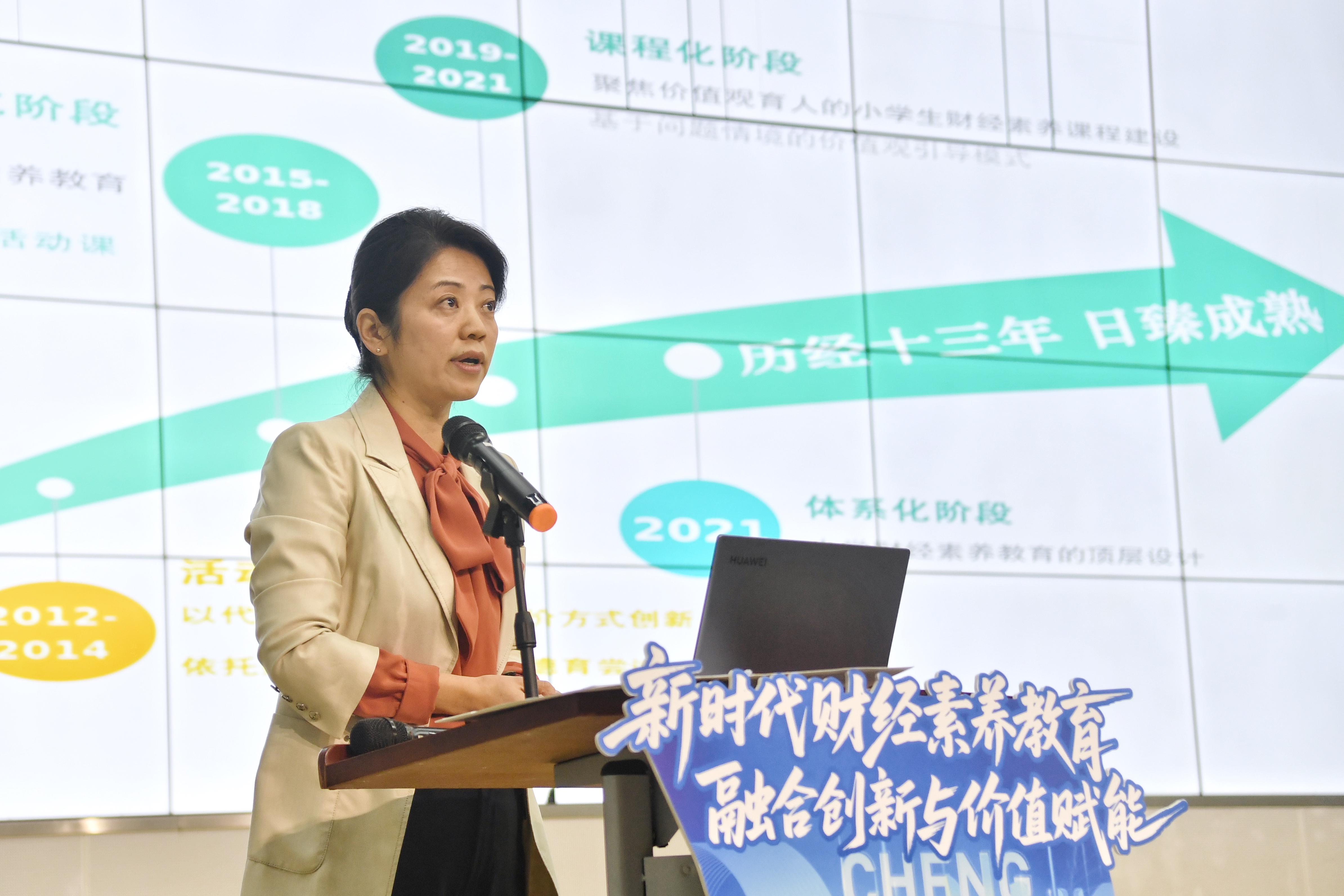 成都高新区益州小学党总支书记、校长李玲以《学研创合一:“五育”融合理念下的小学财经素养教育》为题,分享了学校的实践路径。她介绍,学校将财经素养教育视为价值观塑造和综合能力培养的重要途径,其目标是基于“五育”融合理念,为学生的终生幸福奠定基础。