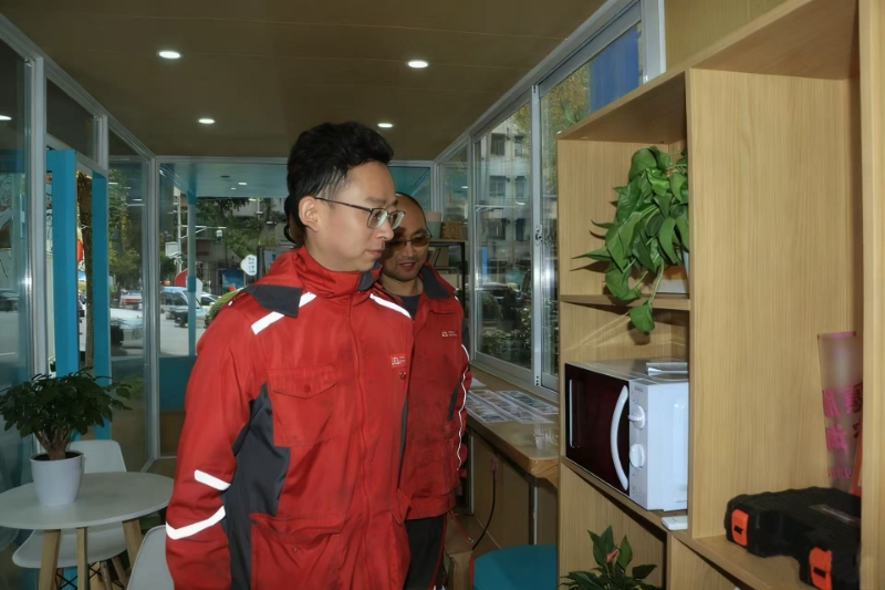 驿站内,京东快递员李师傅一边为手机充电,一边感慨道:“以前累了只能在路边歇脚,现在能喝水、充电,还能看看书,心里特别暖!”这座集阅读空间、劳动者休息区与便民服务窗口于一体的“微型服务阵地”,是紫薇社区深化基层治理、推动社企联动的创新成果。