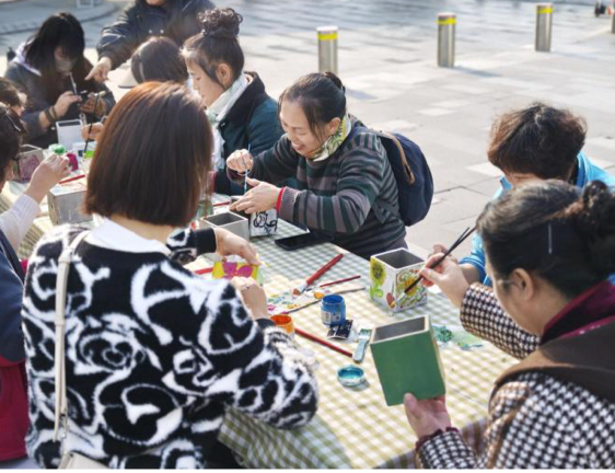 活动现场,素色花瓶、丙烯颜料、画笔等创作材料整齐陈列,居民们围坐桌前,迅速投入创作之中。大家充分发挥想象力与创造力,以明亮色彩勾勒雅致纹样,牡丹雍容、月季鲜活,一幅幅生动的花卉图案在素胚上缓缓绽放。创作过程中,居民们时而低头专注勾勒线条,时而轻声交流配色技巧,欢声笑语间,原本朴素的花瓶逐渐变得色彩斑斓、独具匠心,每一笔色彩都承载着居民对社区的热爱,每一处创意都寄托着对美好生活的期盼。经过一个多小时的精心雕琢,数十件兼具观赏性与创意性的手绘花瓶“新鲜出炉”。