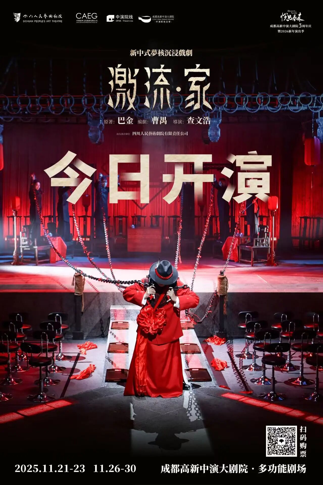 该剧由四川人民艺术剧院历时两年精心筹备,集结中国国家话剧院青年导演查文浩及全国实力主创团队联合打造,创新性融合小说家巴金的原著《家》与剧作家曹禺的同名剧本两大经典,深度还原百年前四川成都高家宅院里的爱恨悲欢。