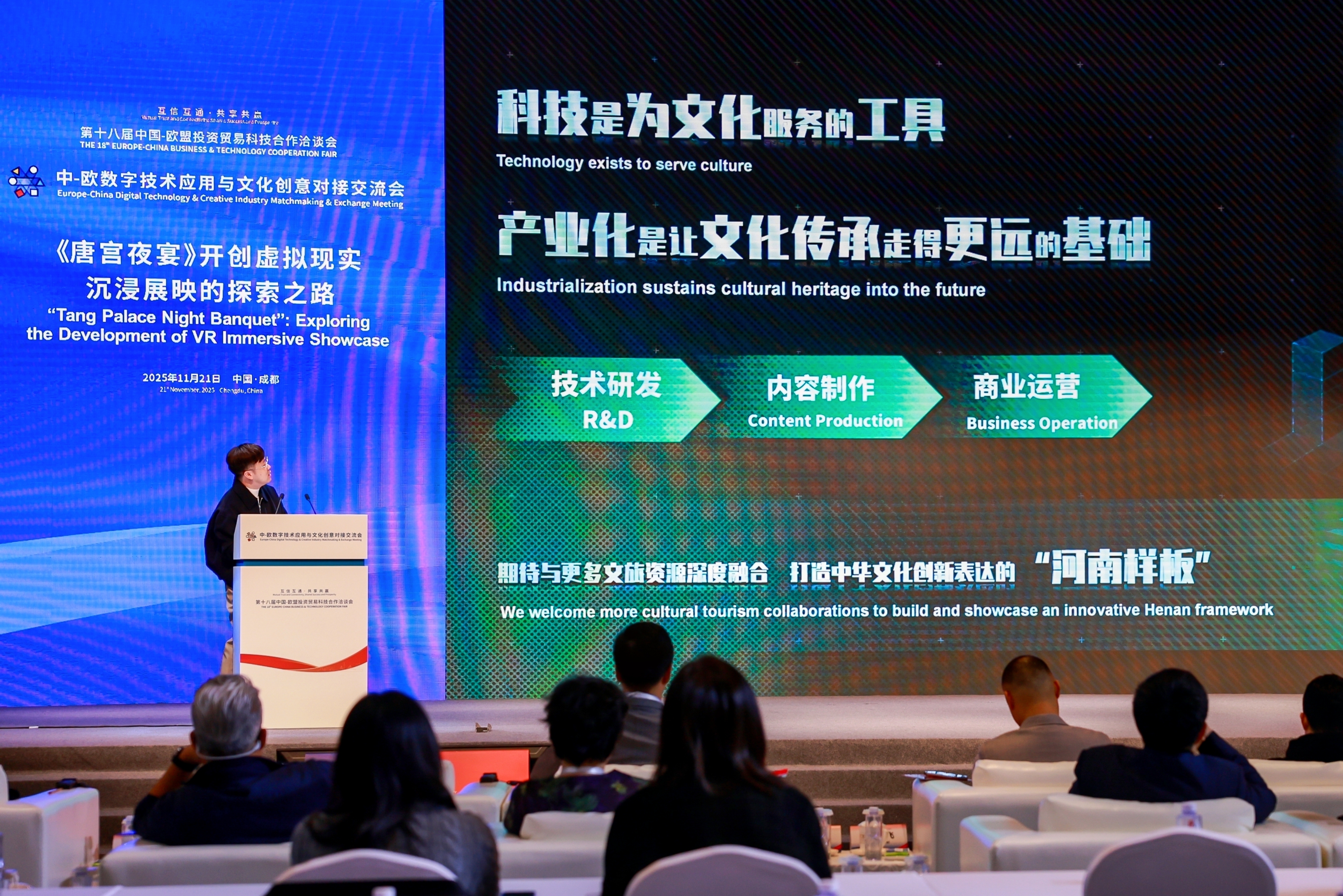 11月21日,第十八届中国-欧盟投资贸易科技合作洽谈会(以下简称“欧洽会”)系列活动——“中-欧数字技术应用与文化创意对接交流会”和“中-欧智能机器人供应链与创新合作对接交流会”在中国-欧洲中心举行,来自数字科技、人工智能、游戏动漫、智慧旅游等领域的企业家、技术专家以及数字产业文创园的相关嘉宾,通过案例分享、专场对话等环节,分享了“AI+智慧旅游”“AI+文创”以及成都高新区构建国际化数字文创产业生态圈的思考和实践。