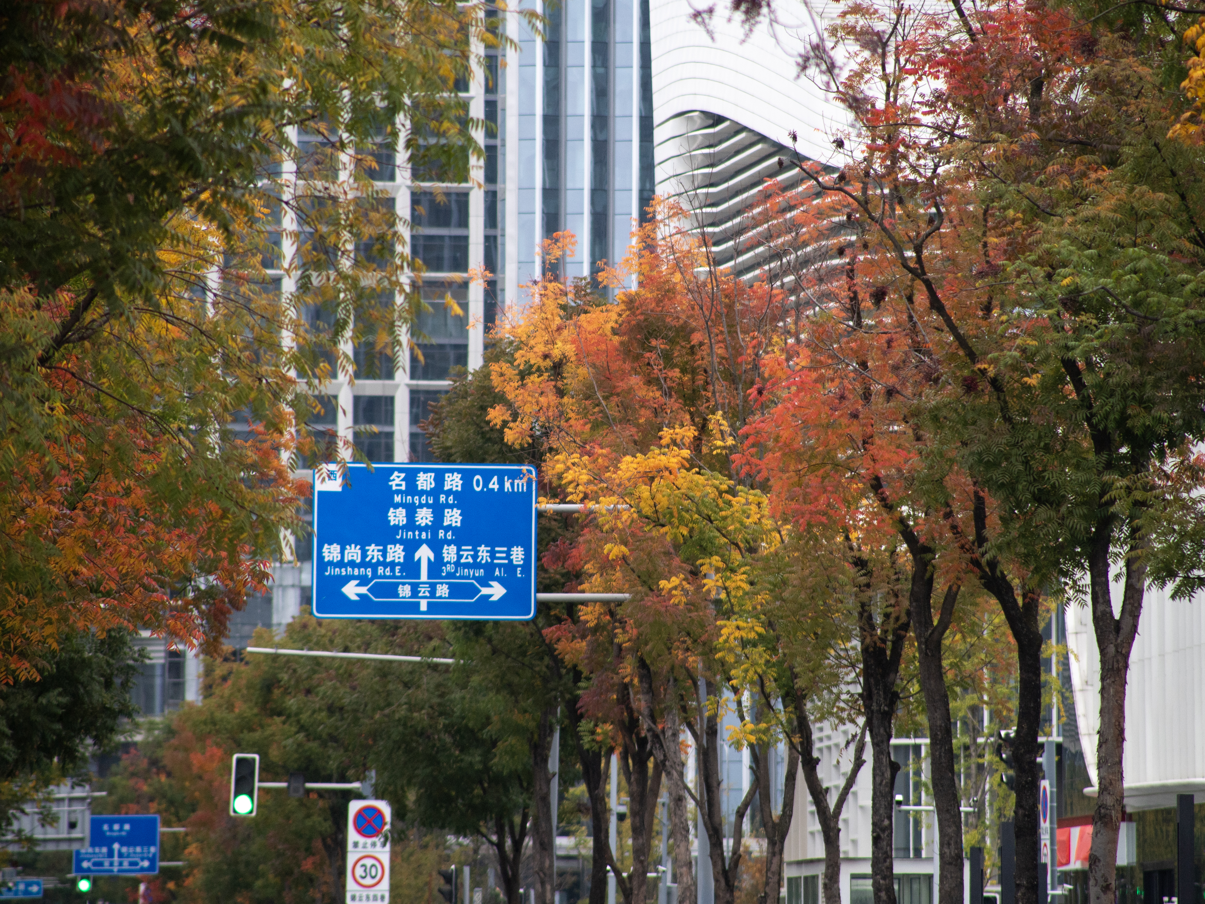 云东四巷,多彩的树叶交织,构成街头的别样风景。