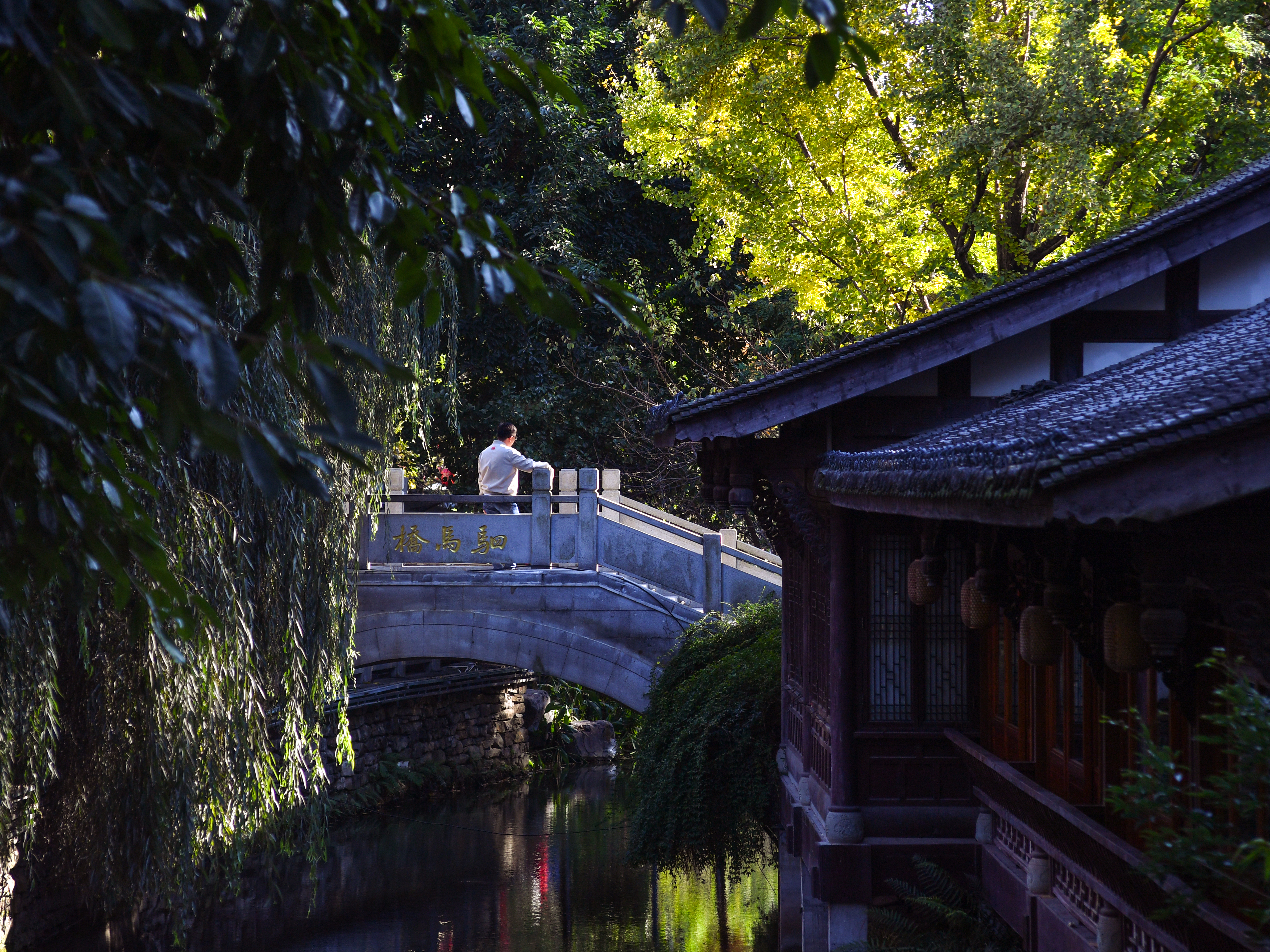 铁像寺水街,阳光正好。光影交织间,市民在石桥上欣赏风景。