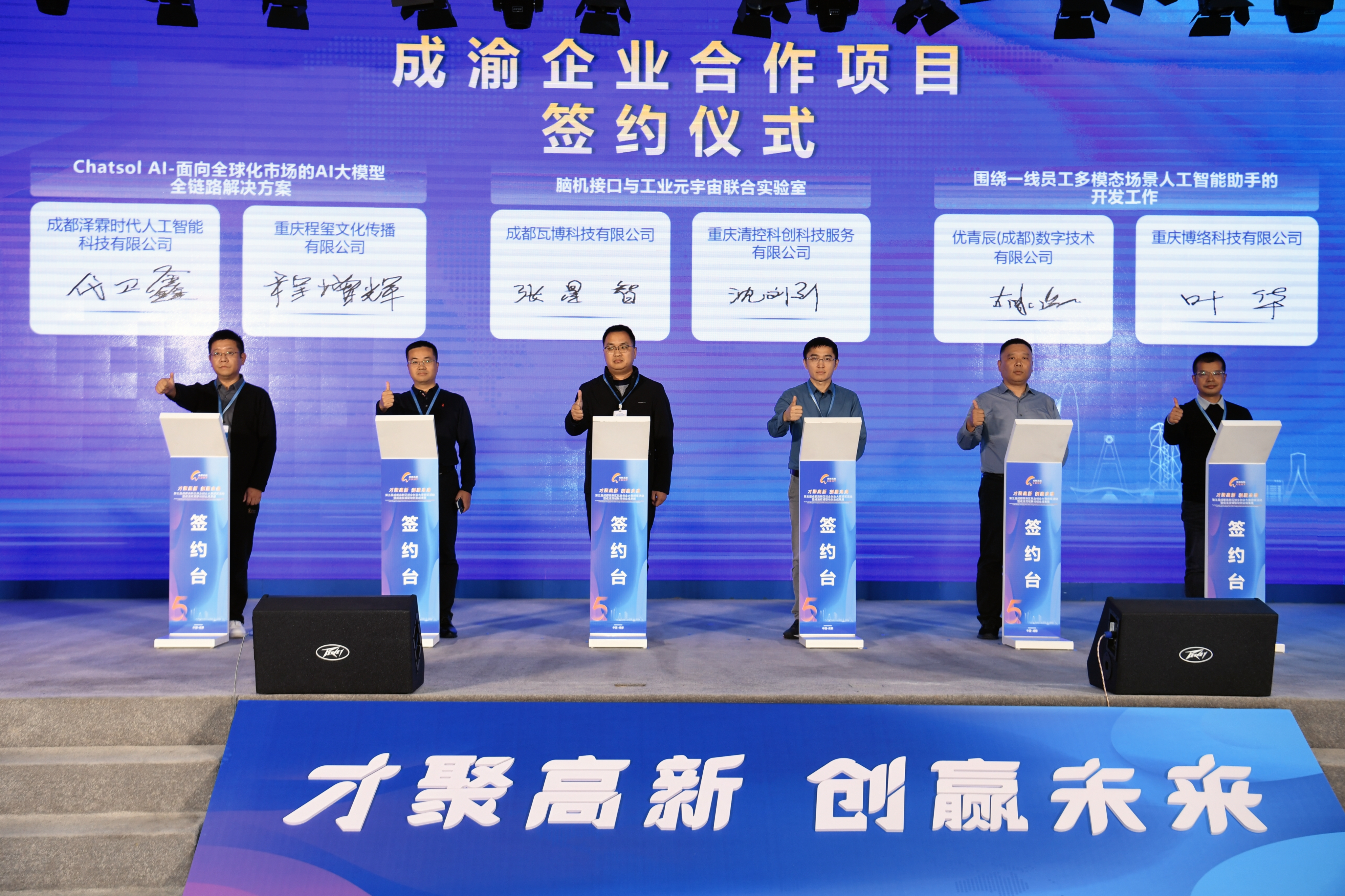 活动亮点纷呈,同期举办的成渝双城联动创业成果展,生动演绎了两地创新创业的澎湃动能与协同发展的紧密步伐。现场完成的多轮重磅签约更是将活动推向高潮,包括成渝重点产业企业合作,成都高新区与都江堰市、大邑县的区域协同等,合作范围覆盖电子信息、智能制造等多个领域,旨在推动岗位共享、培训联动与创业孵化,将大赛影响力从赛场延伸至更广阔的产业空间。