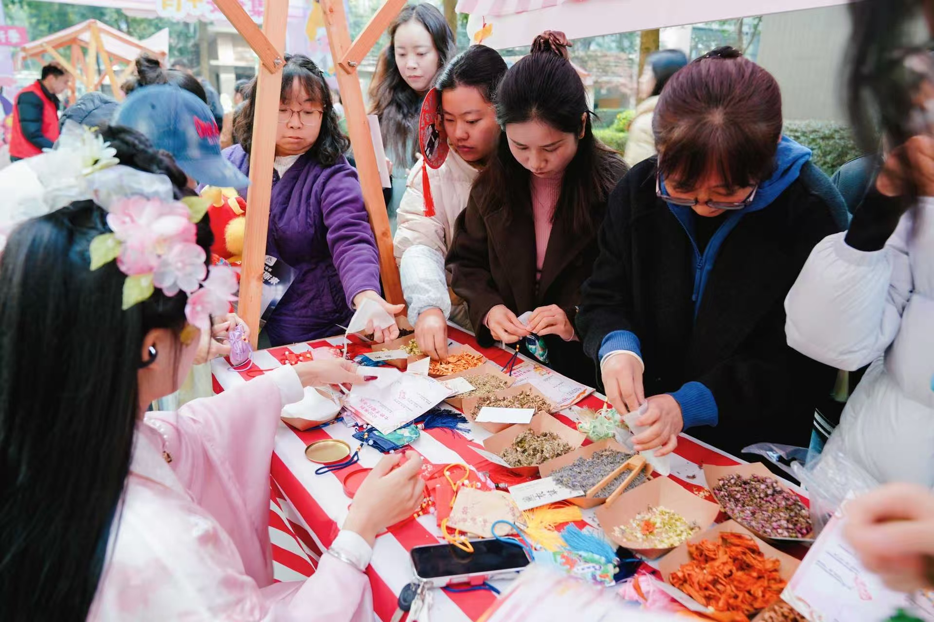 同时,现场设置的养生咖啡品鉴、药材识别、中药香包制作等互动环节,让大家在动手实践中学习养生知识,将健康理念融入日常生活。“在轻松氛围中认识药材,也提醒我们关注身体状态,不做‘隐形病人’。”居民唐萍对活动赞不绝口。