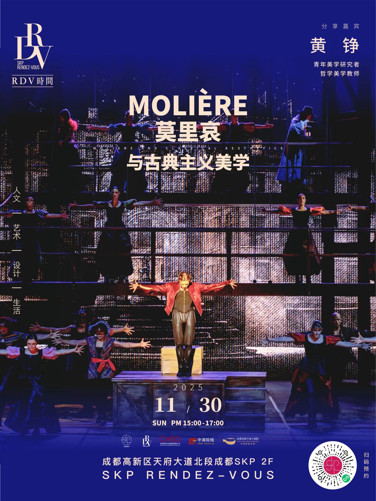 作为法国十七世纪最杰出的古典主义喜剧大师,莫里哀以三十余部作品、三百多个鲜活人物与跨越时代的舞台创造,奠定了其在世界戏剧史中的不朽地位。此次讲座特邀青年美学研究者黄铮,从文学、美学与思想史的多重维度切入,带领观众重新审视莫里哀的创作理念,探讨其与古典主义的关联以及对现代性的启发,读懂这位“法国文化名片”背后的思想深度与艺术魅力。