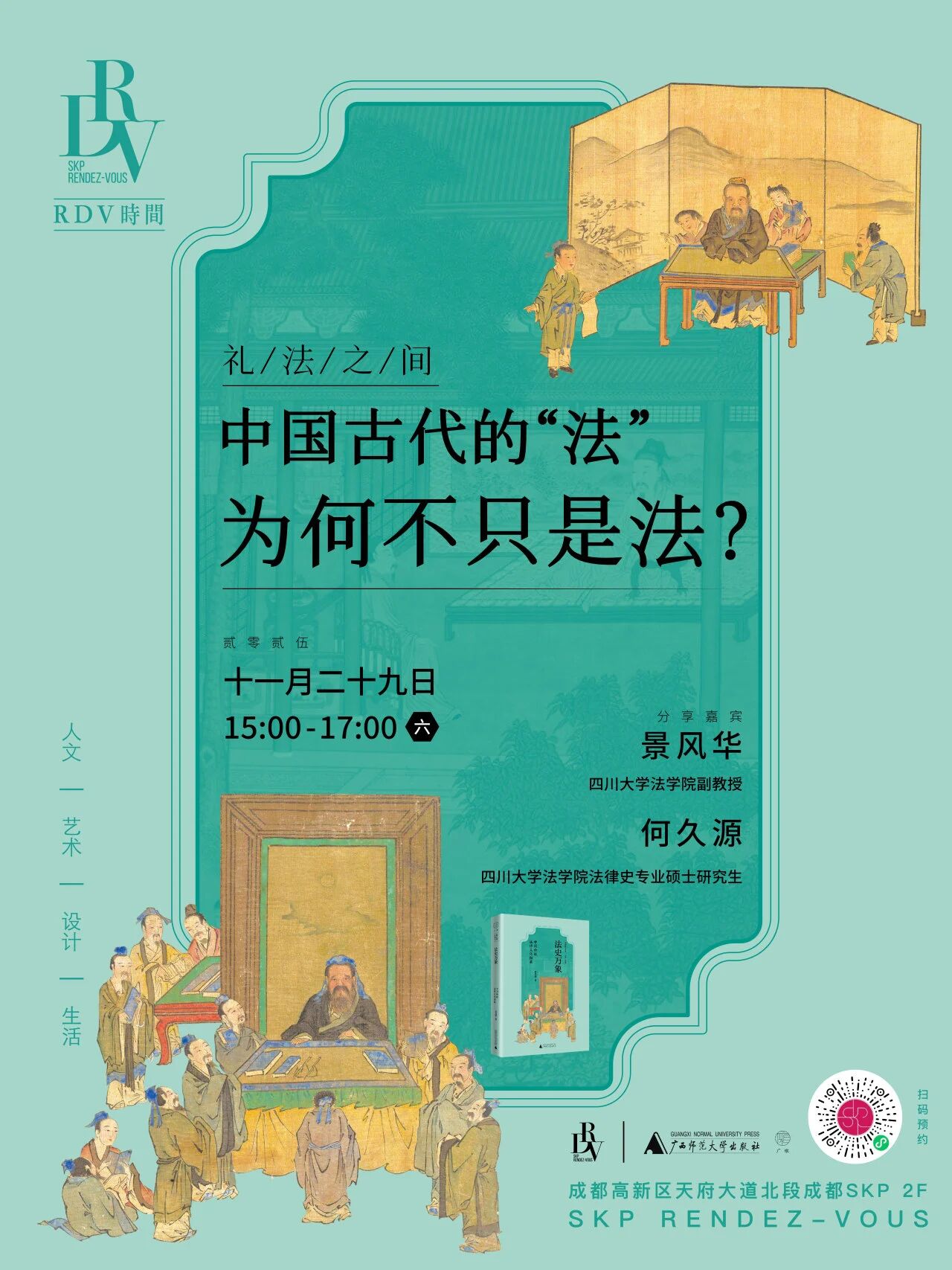 中国古代法律并非冷峻的条文体系,而是深深嵌入礼制与伦理之中的独特文明表达。从《如懿传》中守孝情节的真实性,到《红楼梦》中继承人设定的礼法依据,再到《春秋》兼具史书与司法权威的文化现象,都折射出“以礼入法”的中国古代法律精神。《法史万象:中国传统法律文化撷英》作者景风华与学生何久源将带来主题分享,深入解析礼法交织的历史逻辑,解读传统法律背后的秩序理念、人情温度与文化智慧。