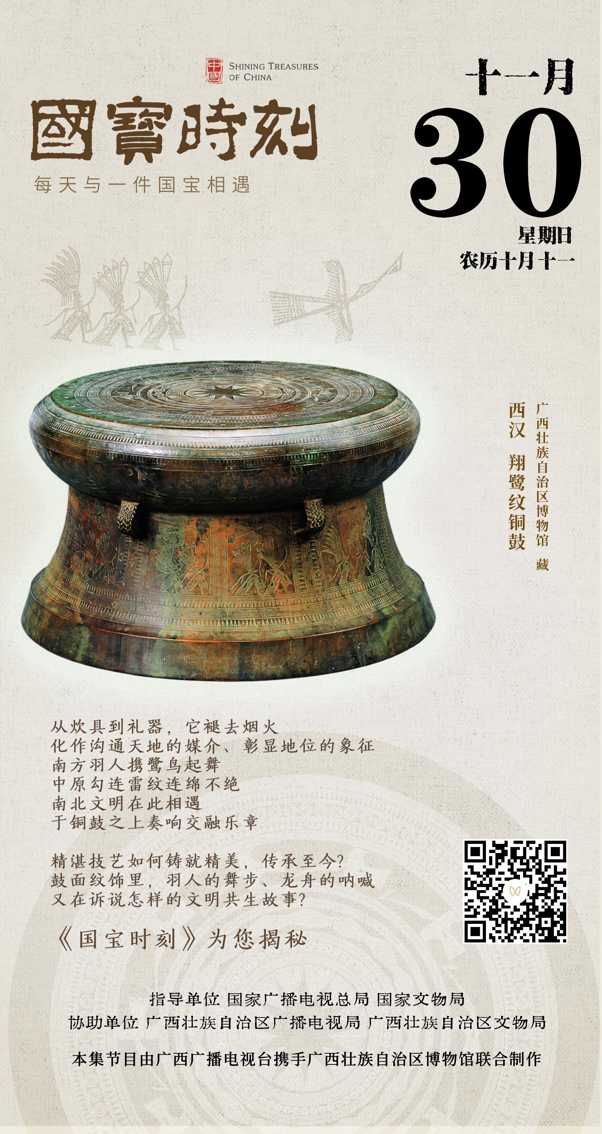 每天与一件国宝相遇!《国宝时刻・翔鹭纹铜鼓》领略中华文明兼容并蓄的岭南表达