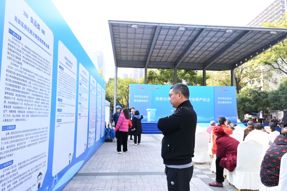 12月2日,成都高新区市场监管局在桂溪街道和平广场举行“以案释法,守护民生”典型案例巡展活动,通过案例展示、现场讲解、互动体验等形式,让市民“零距离”感受市场监管的执法成效,提升维权意识和能力。