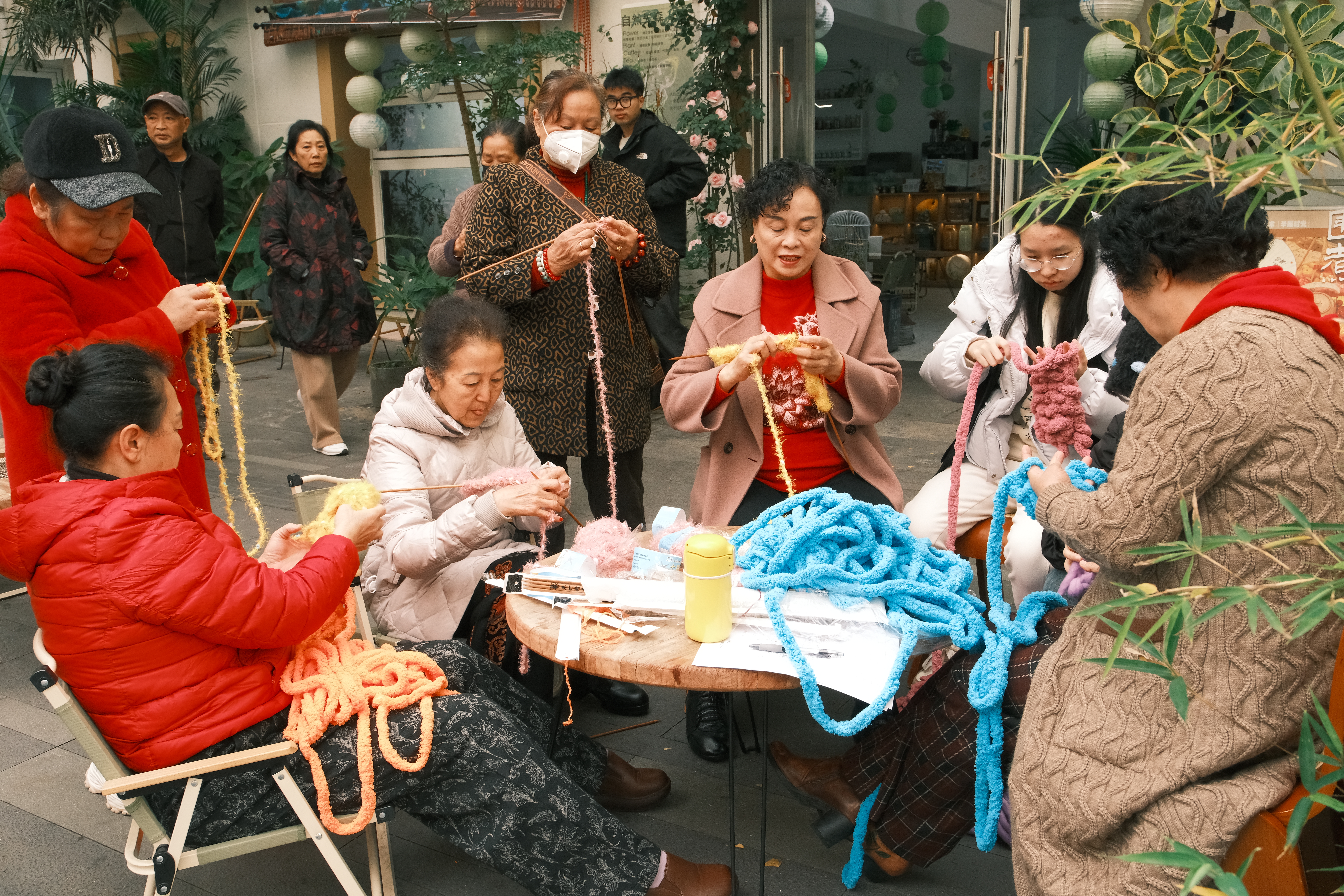 社区居民在编织手工