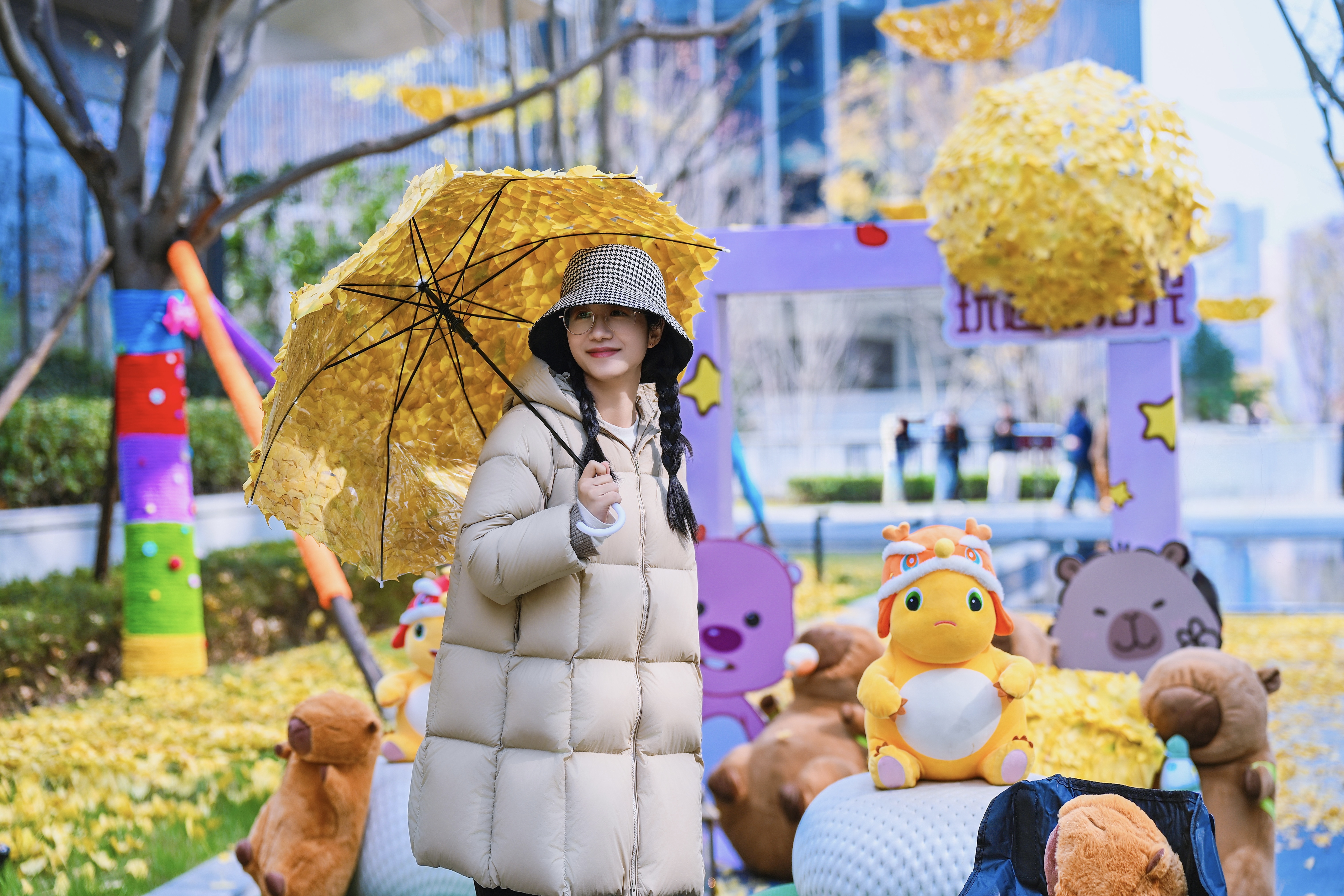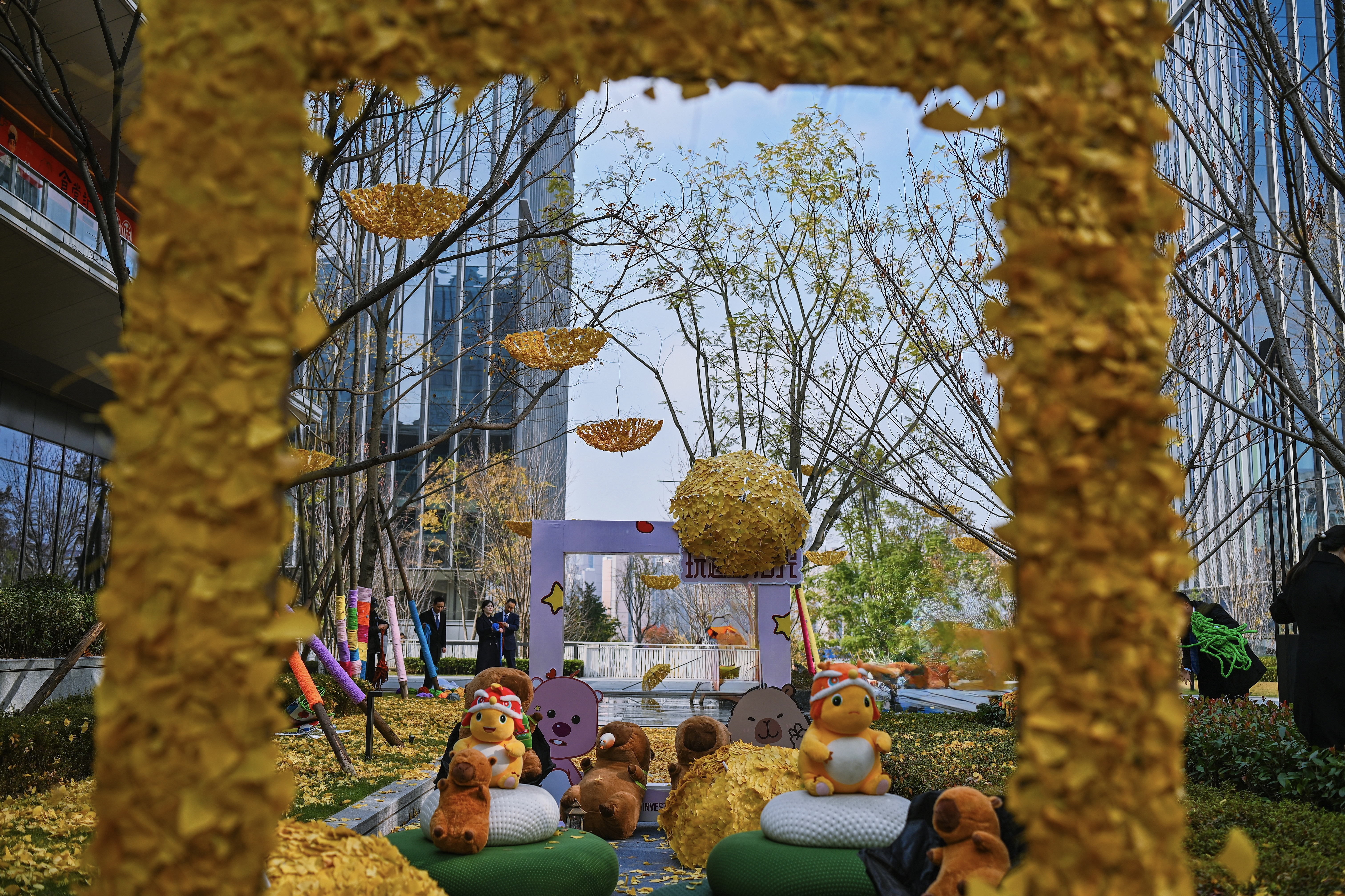 小树穿上了五彩斑斓的“毛衣”、一扇扇点缀着金黄银杏叶的“时空之门”和用树叶装扮而成的“花伞”吸引大家驻足拍照……12月5日,初冬来临之时,位于成都高新区的AI创新中心二期的树木统一“换装”,为冬日增添了一份不一样的色彩。