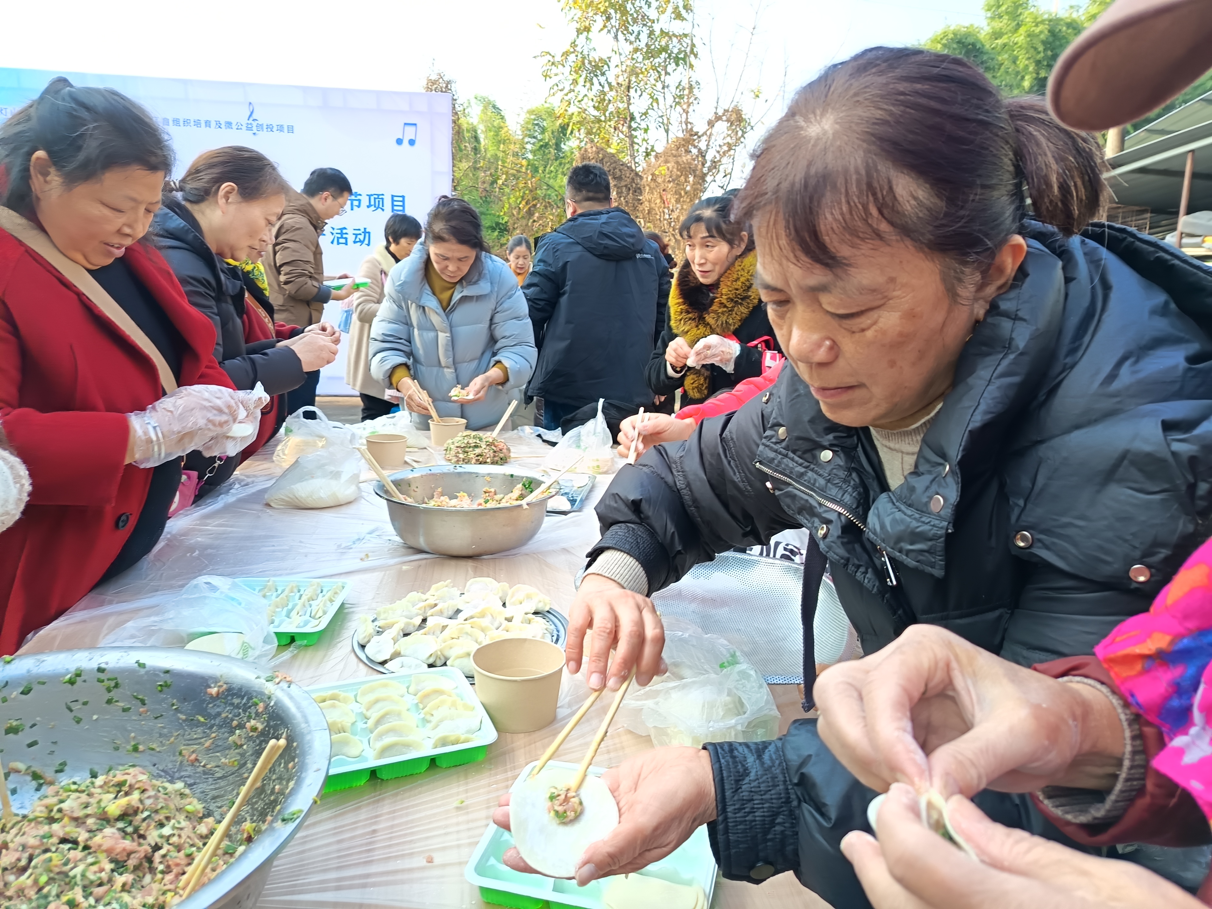 社区居民一起包饺子