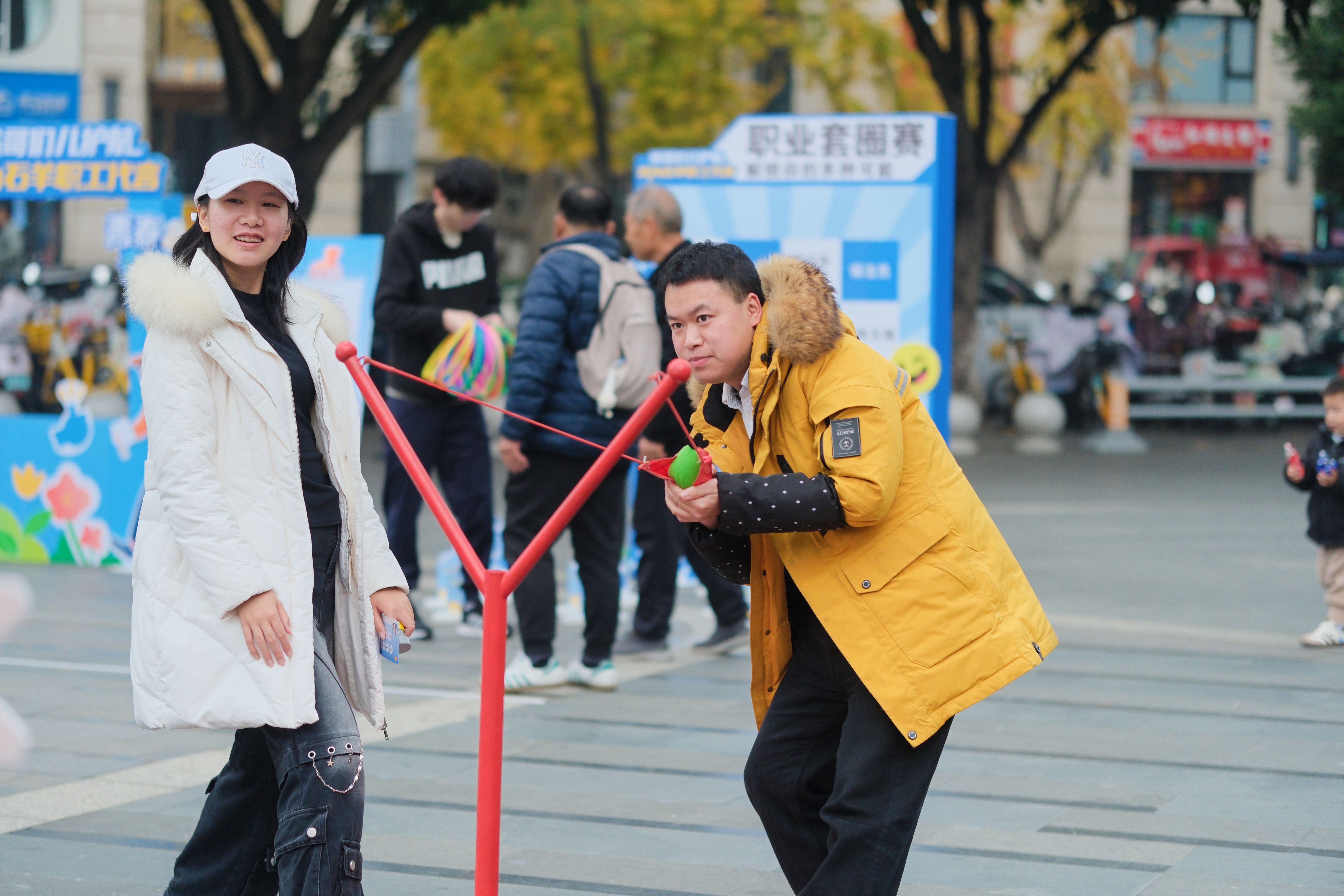 慰问与代言环节奠定了温暖的基调,随后举行的趣味游园会则点燃了全场的欢乐气氛。“代言打卡墙”“职业套圈”“职场动力划”等特色游戏巧妙融入了“职场KPI”“技能buff”等职场元素,设计接地气、趣味足,促进了不同行业、不同年龄职工间的交流与融合。职工们在轻松游戏中释放压力,深切感受到“石羊职工大家庭”的归属感与凝聚力。