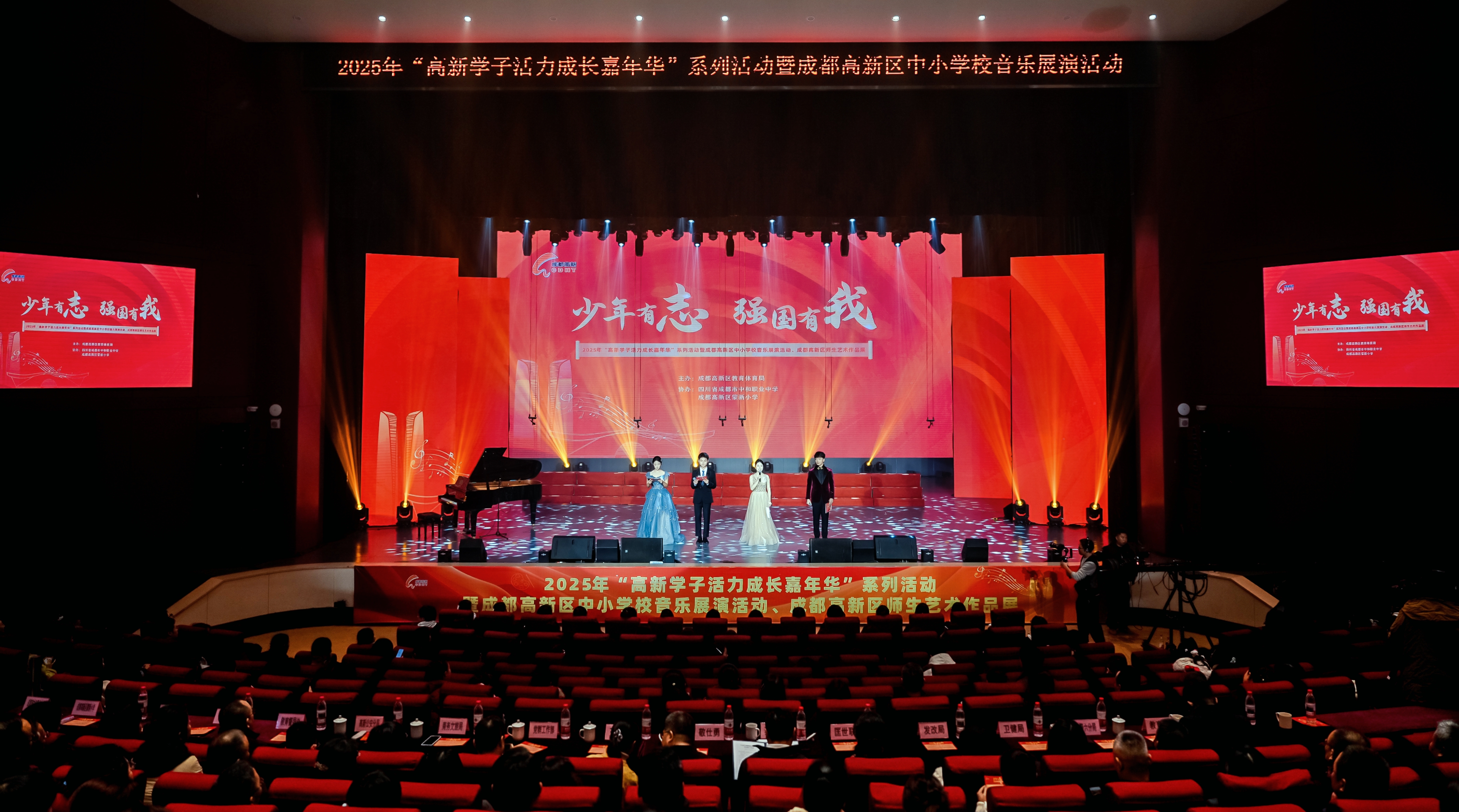 12月10日,成都高新区2025年“高新学子活力成长嘉年华”系列活动之中小学音乐展演与师生艺术作品展在成都市中和职业中学艺术中心举行。活动由成都高新区教育体育局主办,成都市中和职业中学、成都高新区蒙新小学承办,以“歌声与画卷交织,舞姿与笔墨辉映”的生动形式,集中呈现区域美育工作的阶段成果,展现了师生昂扬的艺术风采。