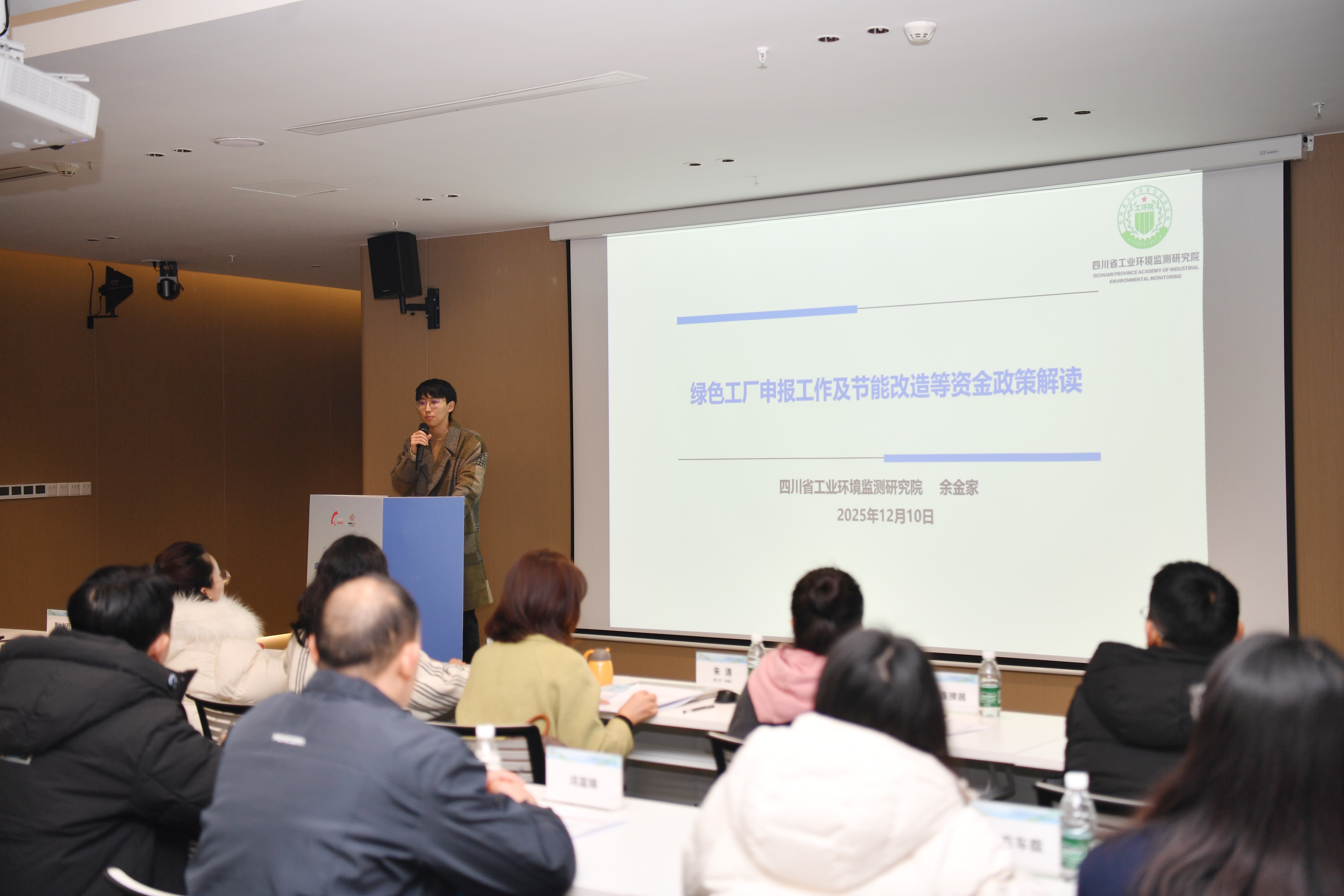 当天活动中,主办方特邀四川省工业环境监测研究院专家余金家进行专题授课,系统解读了国家级、省级绿色工厂的申报趋势、评价指标体系及申报实操要点,帮助企业准确把握创建标准与流程。同时,余金家介绍了国家、省、市关于节能技术改造、高效用能设备更新等方面的资金支持政策,引导企业用足用好各类激励措施,降低绿色转型成本,激发内生动力。