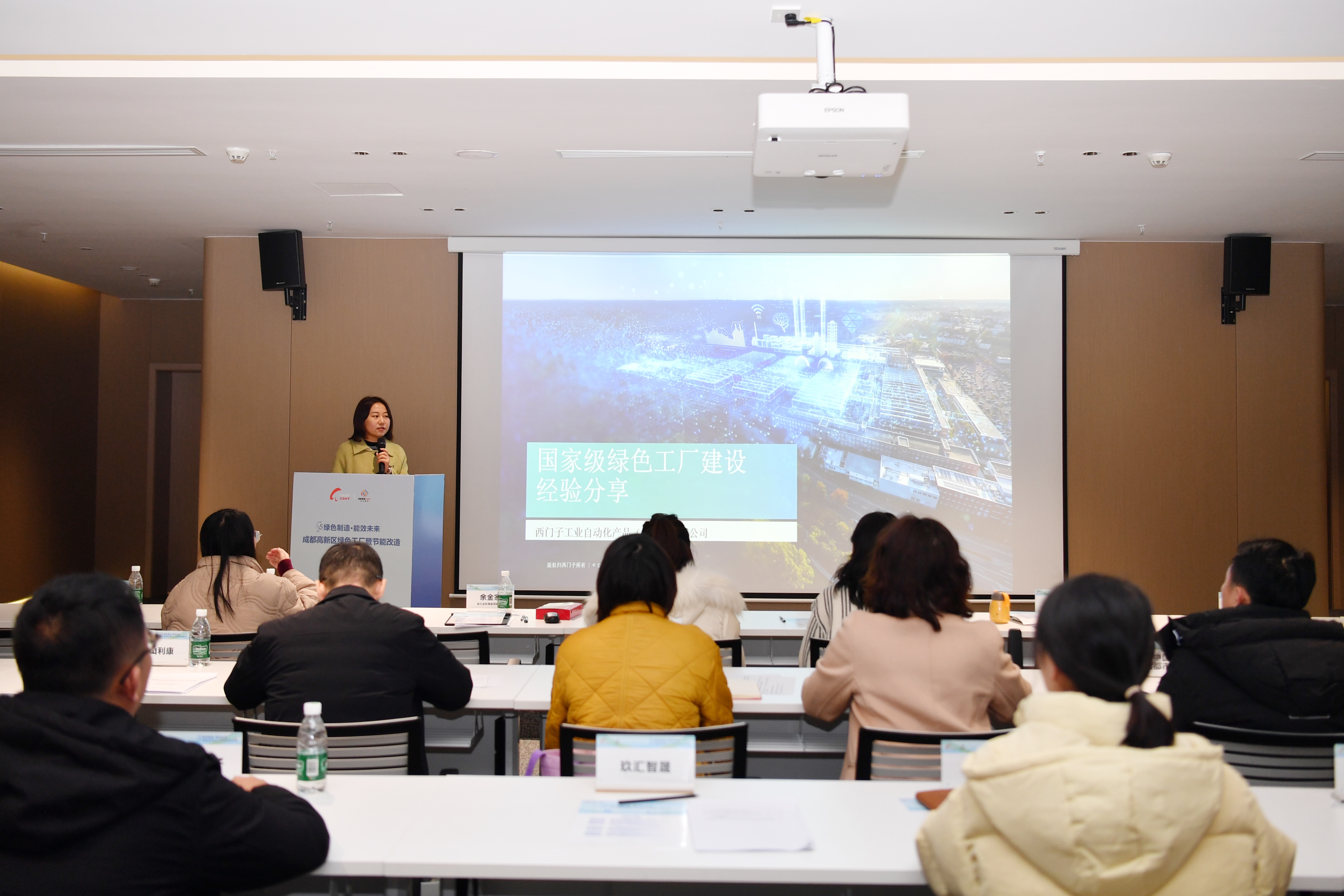 此外,国家级绿色工厂——西门子工业自动化产品(成都)有限公司(以下简称“西门子”)EHS工程师朱清现场分享了绿色工厂建设经验。通过其讲解的标杆案例,充分印证了成都高新区推动绿色工厂建设在促进企业降本增效、提升品牌形象、增强市场竞争力方面的实际效果,也为区内企业提供了可复制、可推广经验。