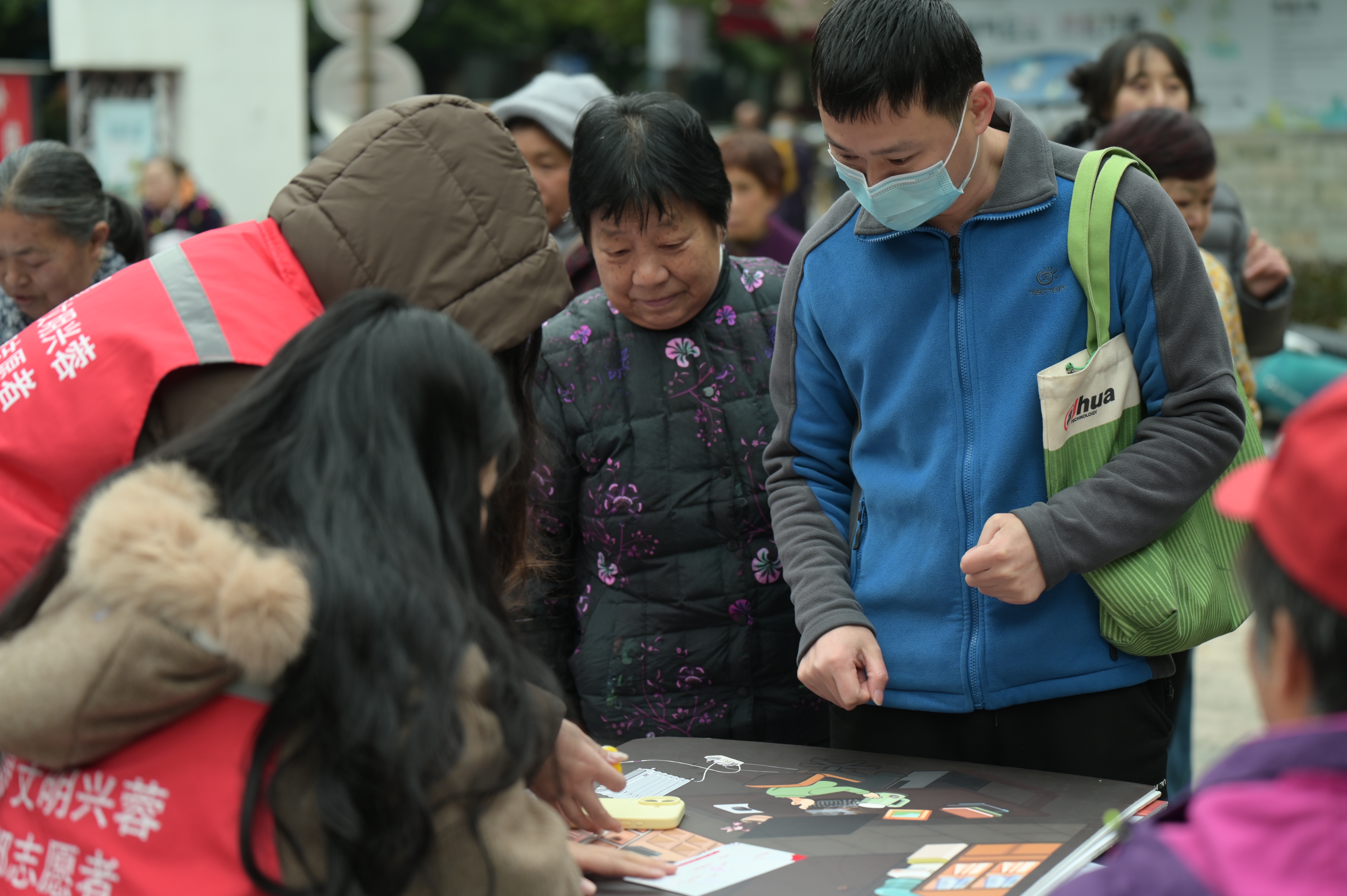 与传统便民服务相得益彰的,是高校志愿者带来的“青春动能”。在安全宣传区,志愿者们通过知识问答、隐患找茬等互动游戏,为居民打造沉浸式安全课堂,让消防安全、用电安全知识入脑入心;地铁服务台前,志愿者们化身“出行向导”,针对老年居民设计了专属教学内容,手把手指导使用地铁APP查询线路,还结合冬季出行特点,耐心提议老人们避开早晚通勤高峰,既能减少拥挤不便,也能降低意外风险。“看着爷爷奶奶们从一脸迷茫到熟练操作,我真切感受到志愿服务就是用点滴行动温暖身边人。”参与服务的赵同学说。