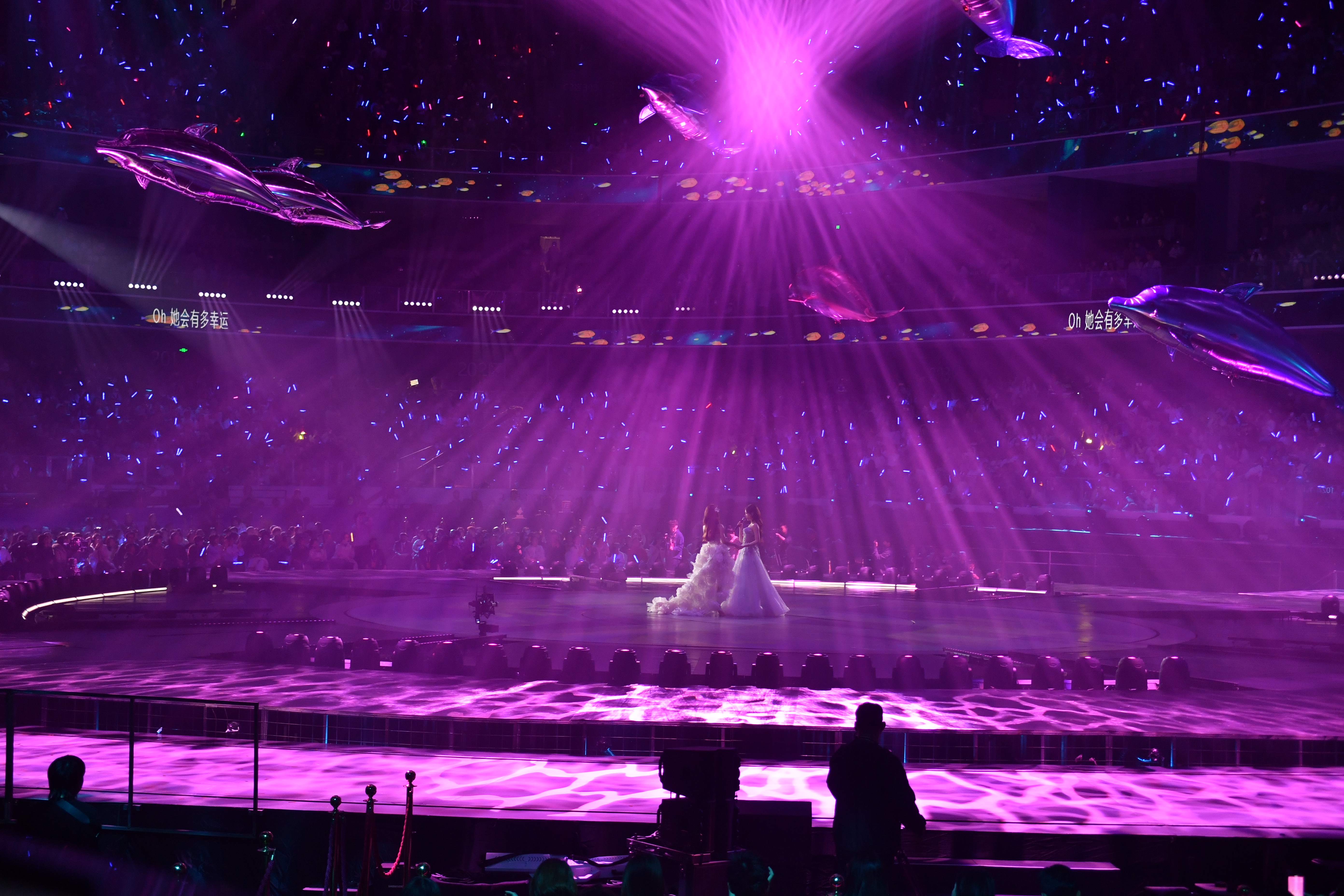 据了解,晚会舞台采用六圆环四面舞台设计,配备4000台灯光、80组机械与360组单点数控设备,构建出全方位沉浸式视听空间,让全场观众皆处“C位”,每一束光影都诉说着电影与城市的交融之美。