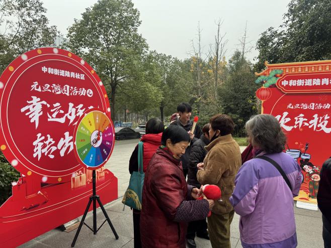 陆肖社区“元旦喜乐·游园贺岁”活动将传统民俗与现代互动深度融合,沉浸式激活节日文化生命力。活动现场,幸运大转盘让居民收获惊喜与欢笑,投壶游戏让大家沉浸式体验传统礼仪文化,套圈游戏中居民相互支招、彼此鼓励,邻里情谊悄然升温;非遗糖画摊位前,传承人的精湛技艺令人赞叹,晶莹剔透的糖画承载童年记忆,让居民在舌尖甜蜜中品味节日幸福。
