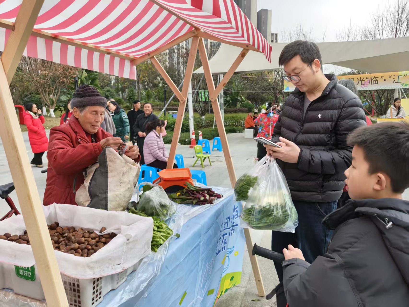 近日,成都高新区桂溪街道临江社区“欢迎光‘临’·‘江’有好市”系列市集再度暖心开市:一场以“冬日囤好物·丰收藏冬趣”为主题的社区市集温情启幕。此次活动通过农产品直通、闲置交换、趣味互动等形式,巧妙串联起助农惠民、商业活力与邻里情感,为冬日社区生活注入浓浓暖意。