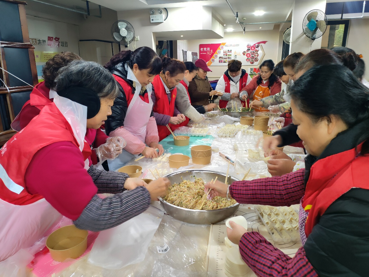 社区居民一起包饺子