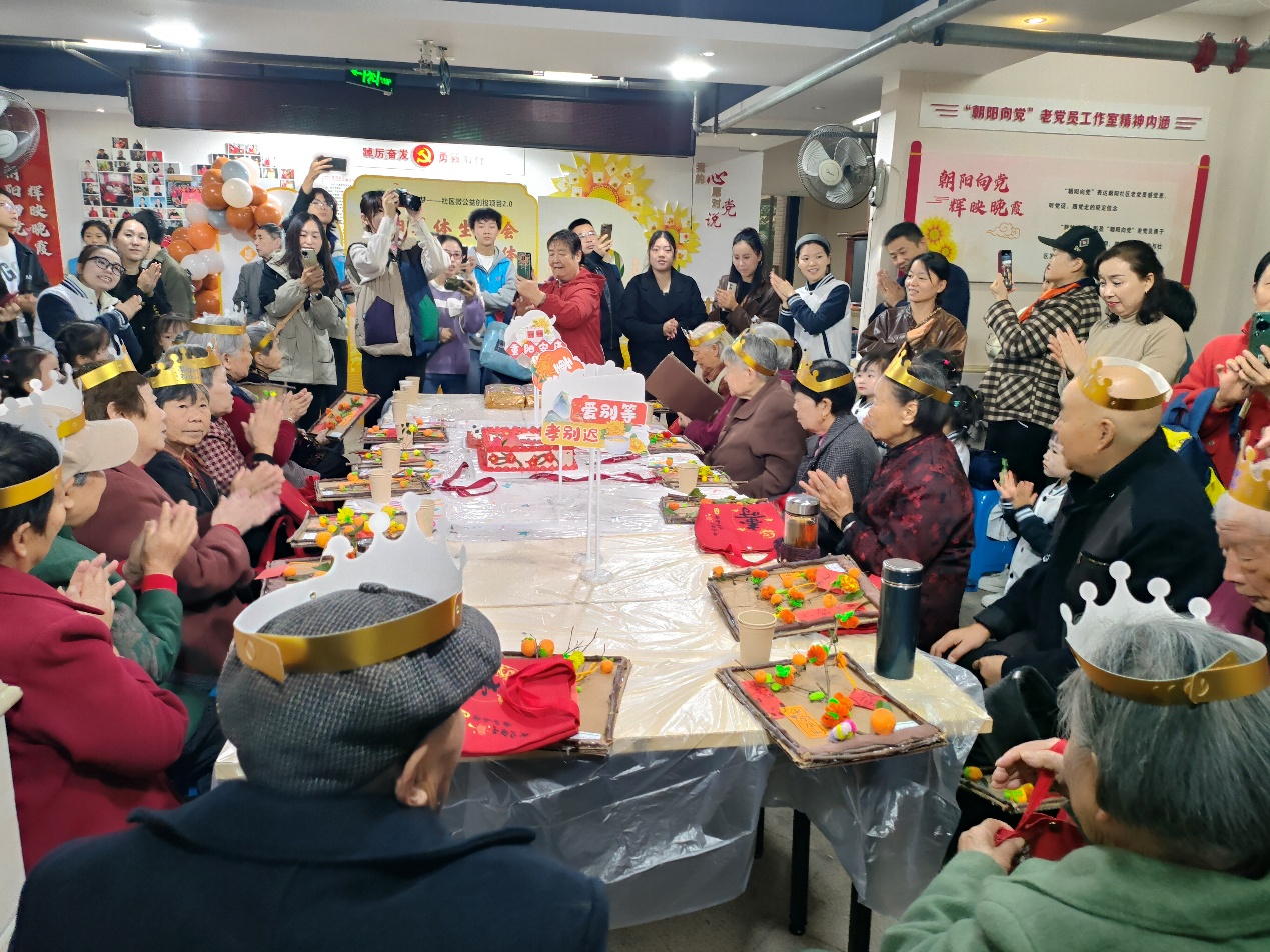 针对新就业群体团圆难、需求难搜集等问题,朝阳青蜂队推出“集‘新’语·圆‘新’愿”项目,通过中秋关爱、微心愿兑现等活动,为90余名外卖骑手、快递员搭建情感联结桥梁,推动其从“服务对象”向“社区共建者”转变。朝阳社区璟南堂乒乓球队以“乒乓球+邻里互助”为载体,开展“邻里一家亲·共筑幸福圈”活动,139名居民在赛事竞技与便民服务中打破陌生壁垒,深化邻里情谊。朝阳社区老年协会实施“助老悦邻·幸福共享”项目,通过重阳集体生日会、冬至包饺子等活动,为156余名老年特殊群体送去节日陪伴。