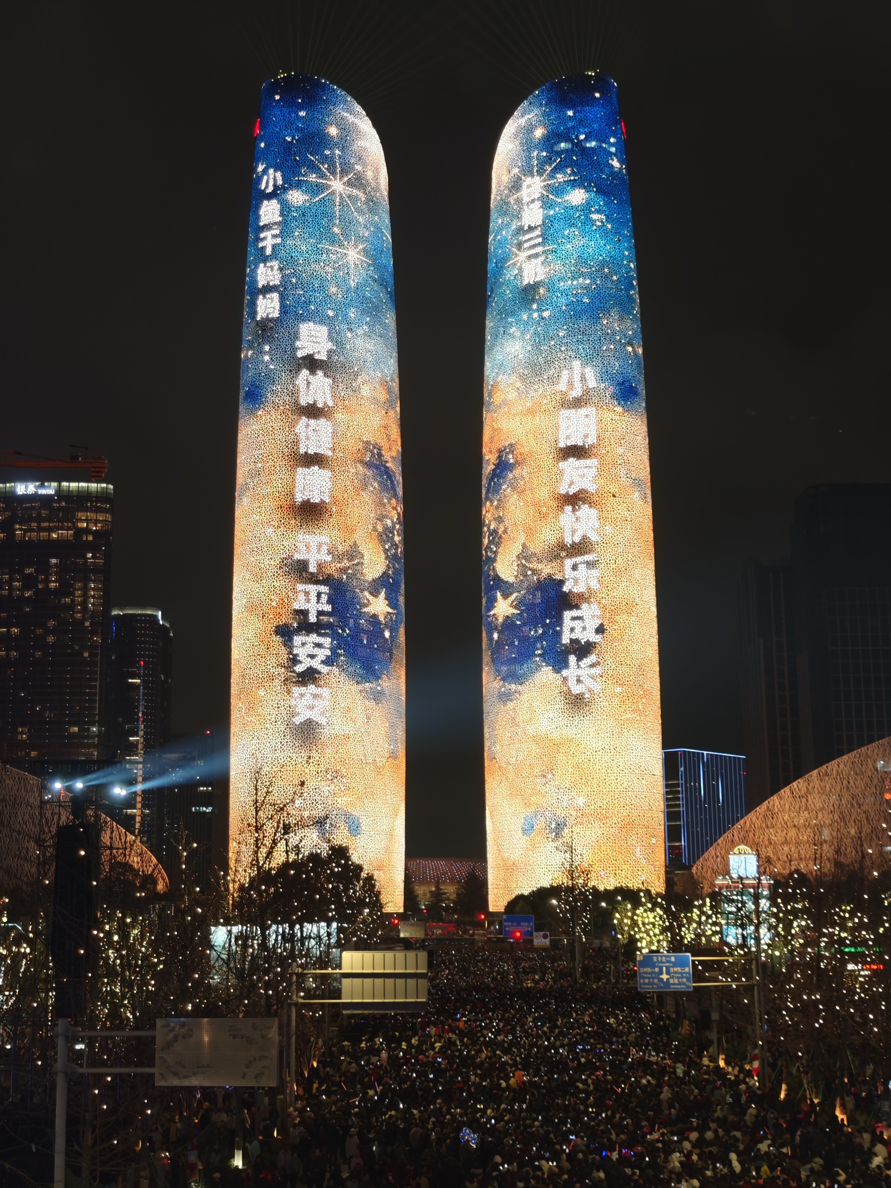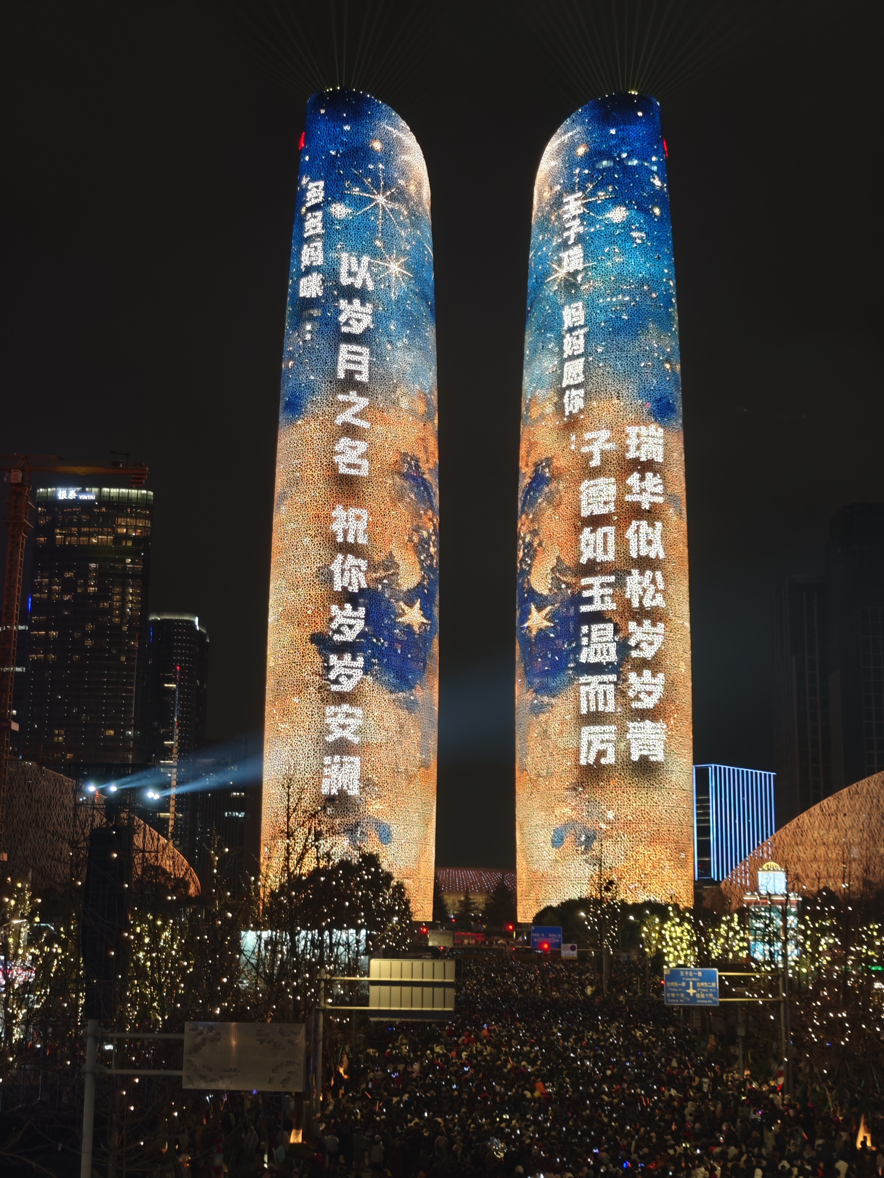 天府双塔跨年灯光秀开启