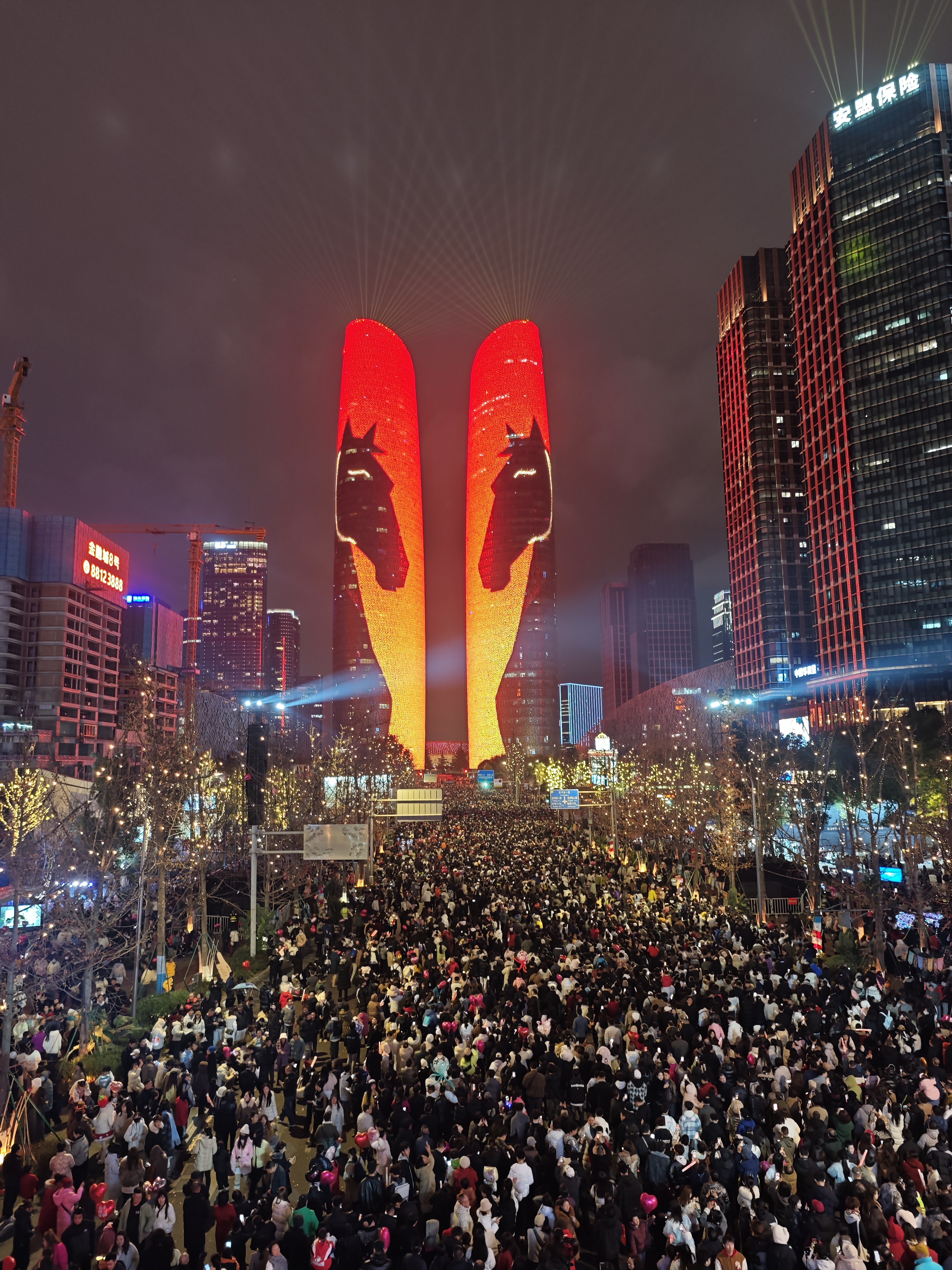 天府双塔以一场360度声光电沉浸式灯光秀点亮城市夜空,一匹鎏金纹络的红鬃骏马在双塔上徐徐浮现,马首昂扬、祥云绕身,而随着哪吒作为“心愿领跑人”跃上塔身,让这场跨年灯光秀成了属于成都这座城市的集体心愿盛宴。在这场光影盛会里,市民心愿是最动人的元素。活动前期通过多轮征集与筛选的600余条心愿,在跨年灯光秀中轮番呈现于天府双塔之上。