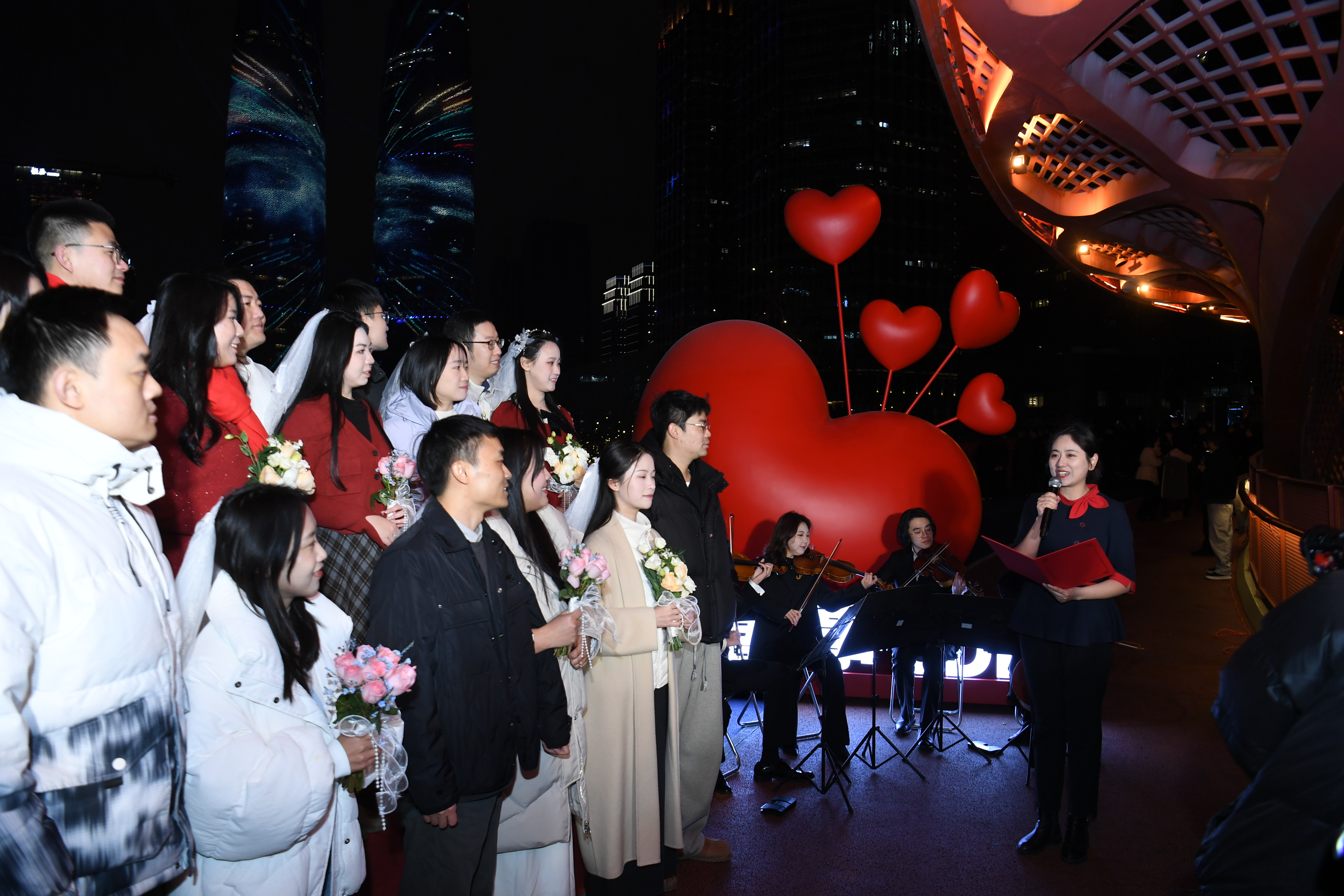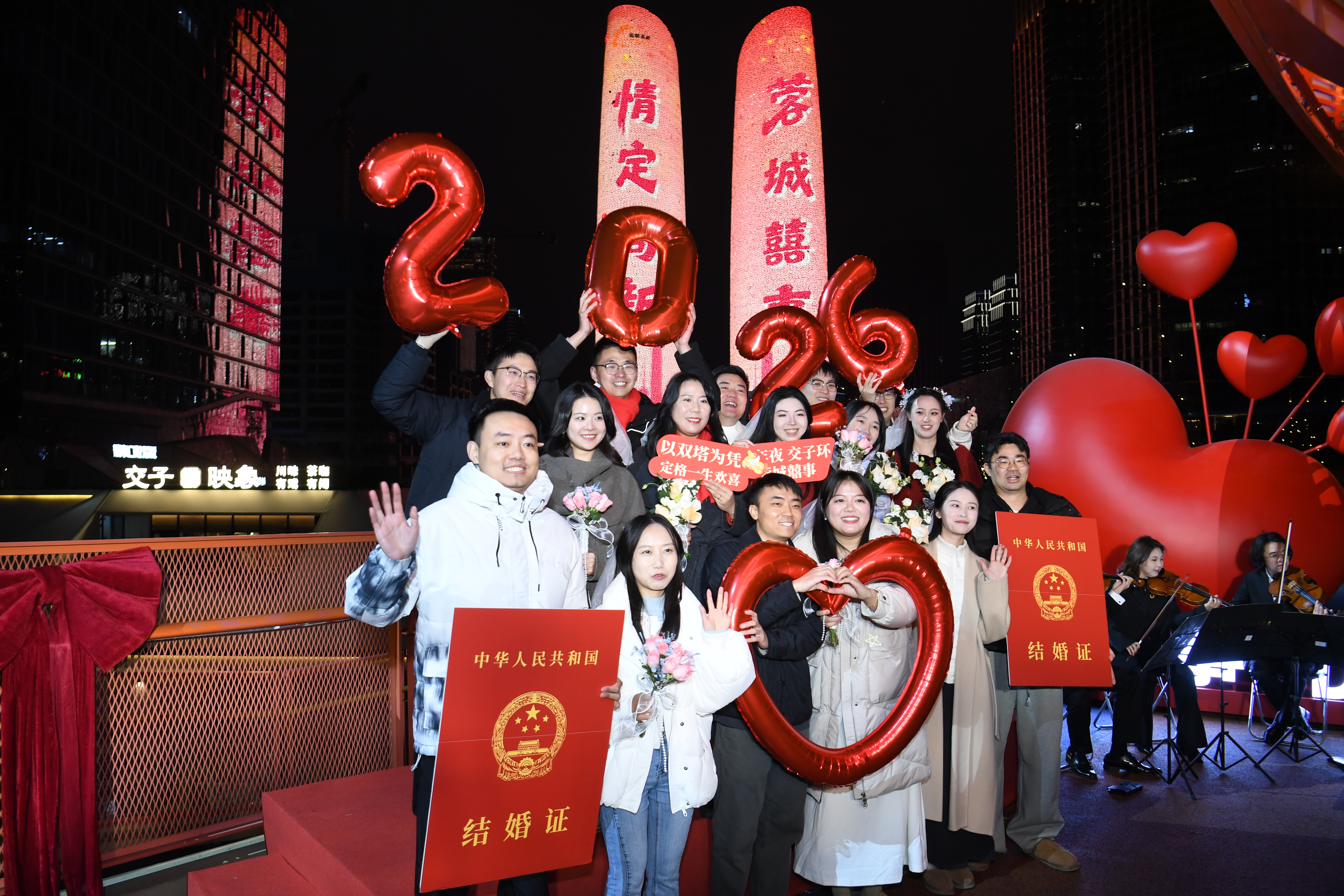与此同时,四川交响乐团带来四重奏现场演奏,悠扬旋律在夜空中流淌,为仪式增添庄重而温馨的艺术氛围。在跨年倒数的浪漫时刻,新人与城市共同迎接新年的到来,留下难忘而美好的幸福记忆。