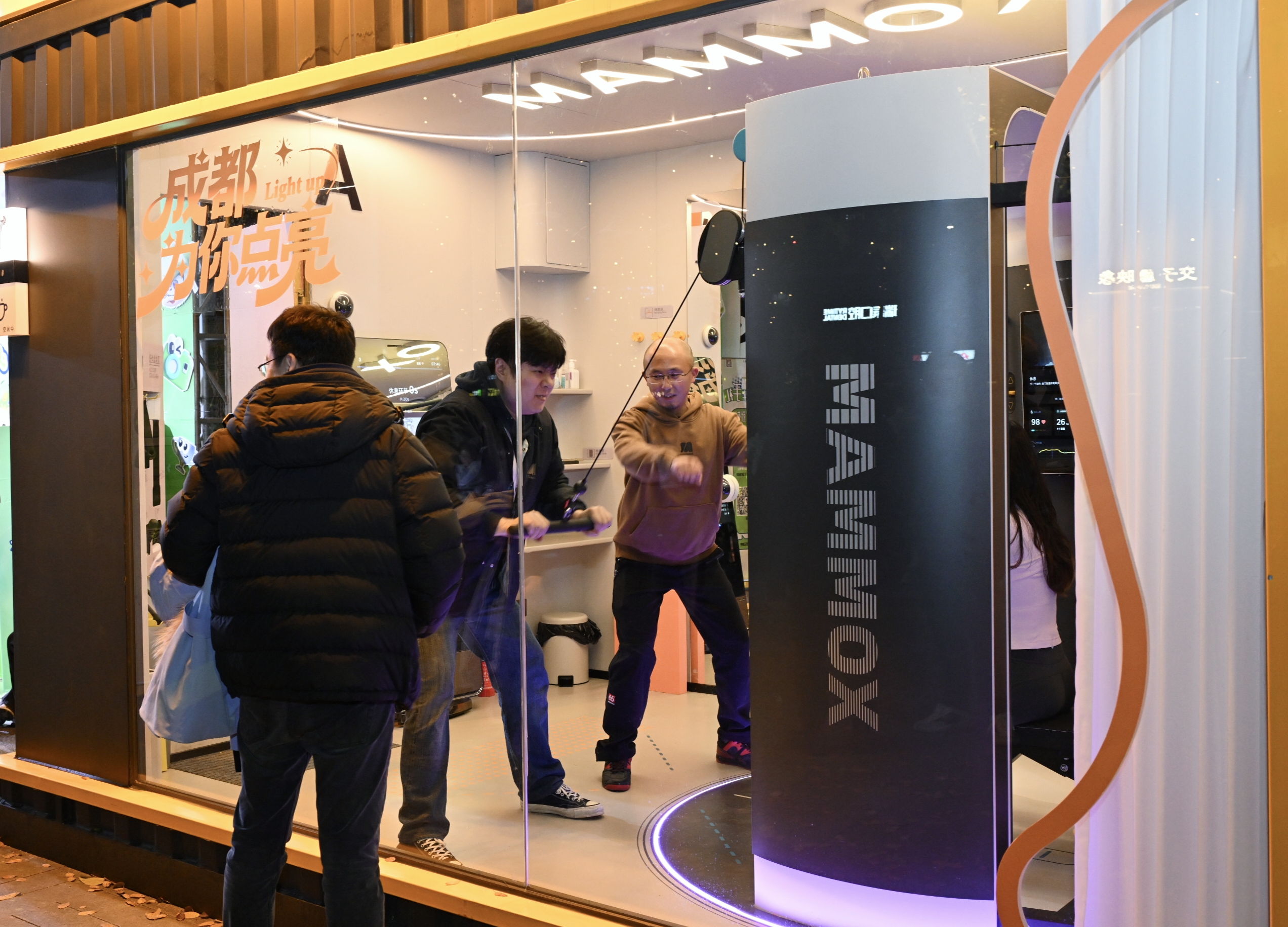 在15平方米的“猛犸舱智能健身舱”里健身,身体可以直观感受到科技如何作用于身体感官。