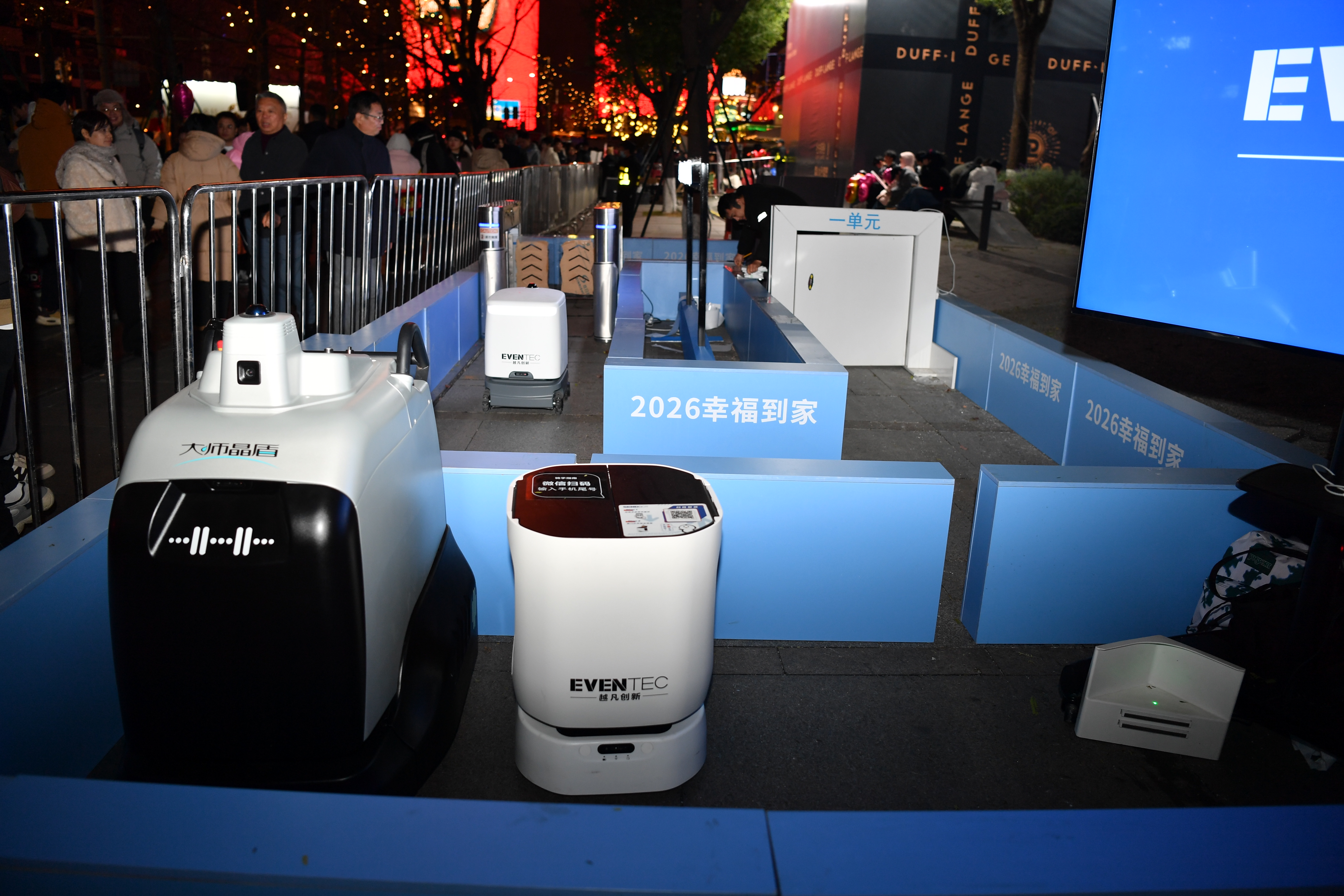 当晚,一系列好看、好玩、好体验的科技新品与智慧场景,把交子大道打造成了现实的“未来生活街区”。其中,越凡创新公司的“享递ultra”配送机器人在模拟社区场景中进行了实地演示。货物配送演示中,面对电梯、闸机等“考题”,只见它气定神闲,独自一“人”自主通过,轻轻松松实现室内外无缝衔接配送。看见这一幕,不少市民开始期待,“如果我们小区有它提供快递服务就好了,机器人送货到家简直太有吸引力了!”
