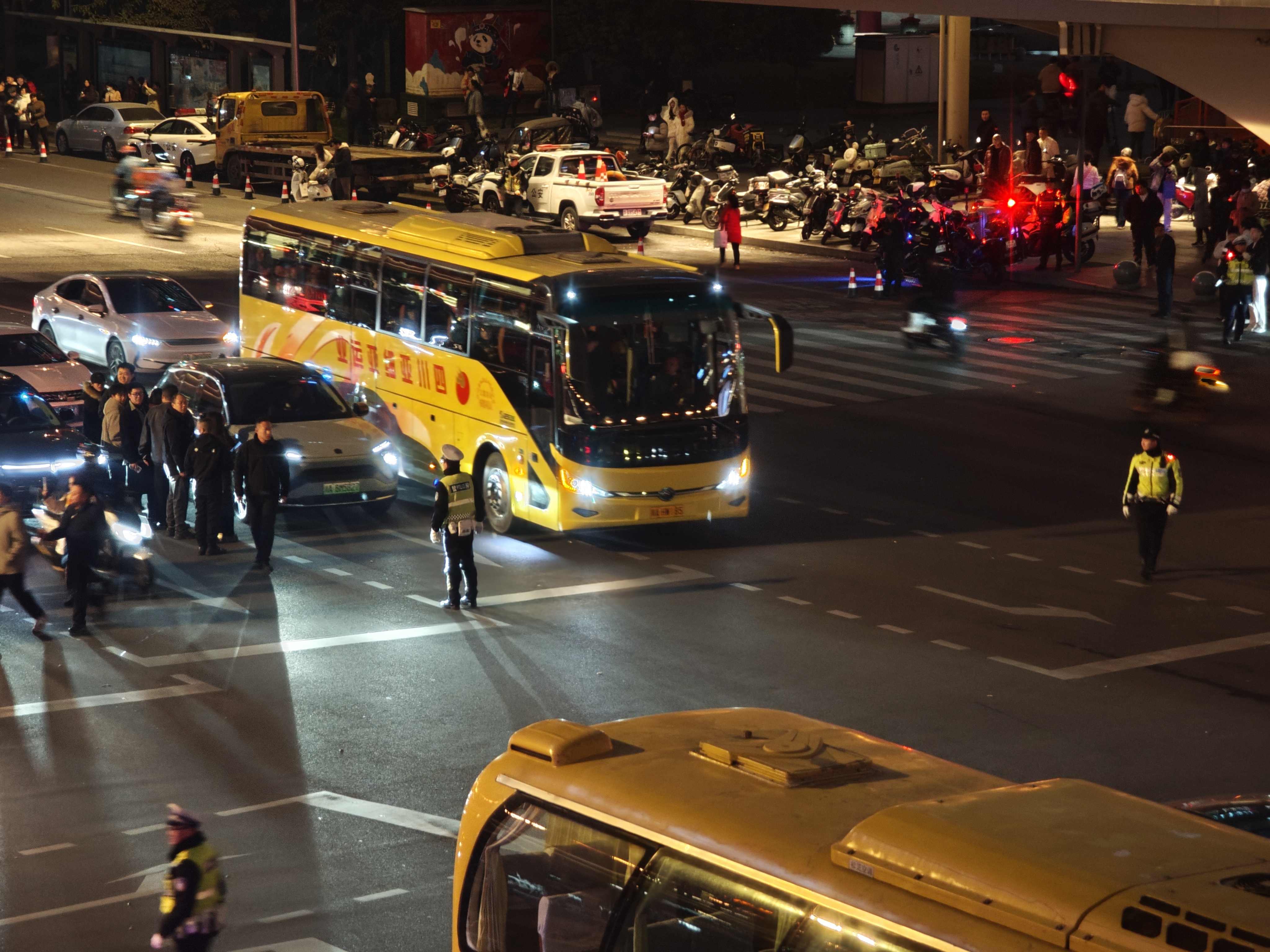 民警开启跨年夜的交通护航工作
