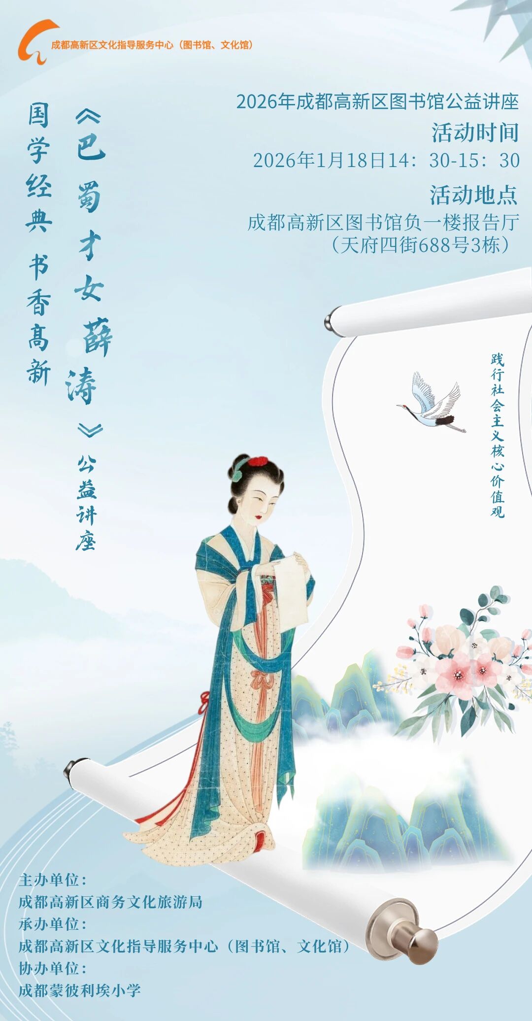 活动地点:成都高新区图书馆(天府四街688号3栋)负一楼报告厅