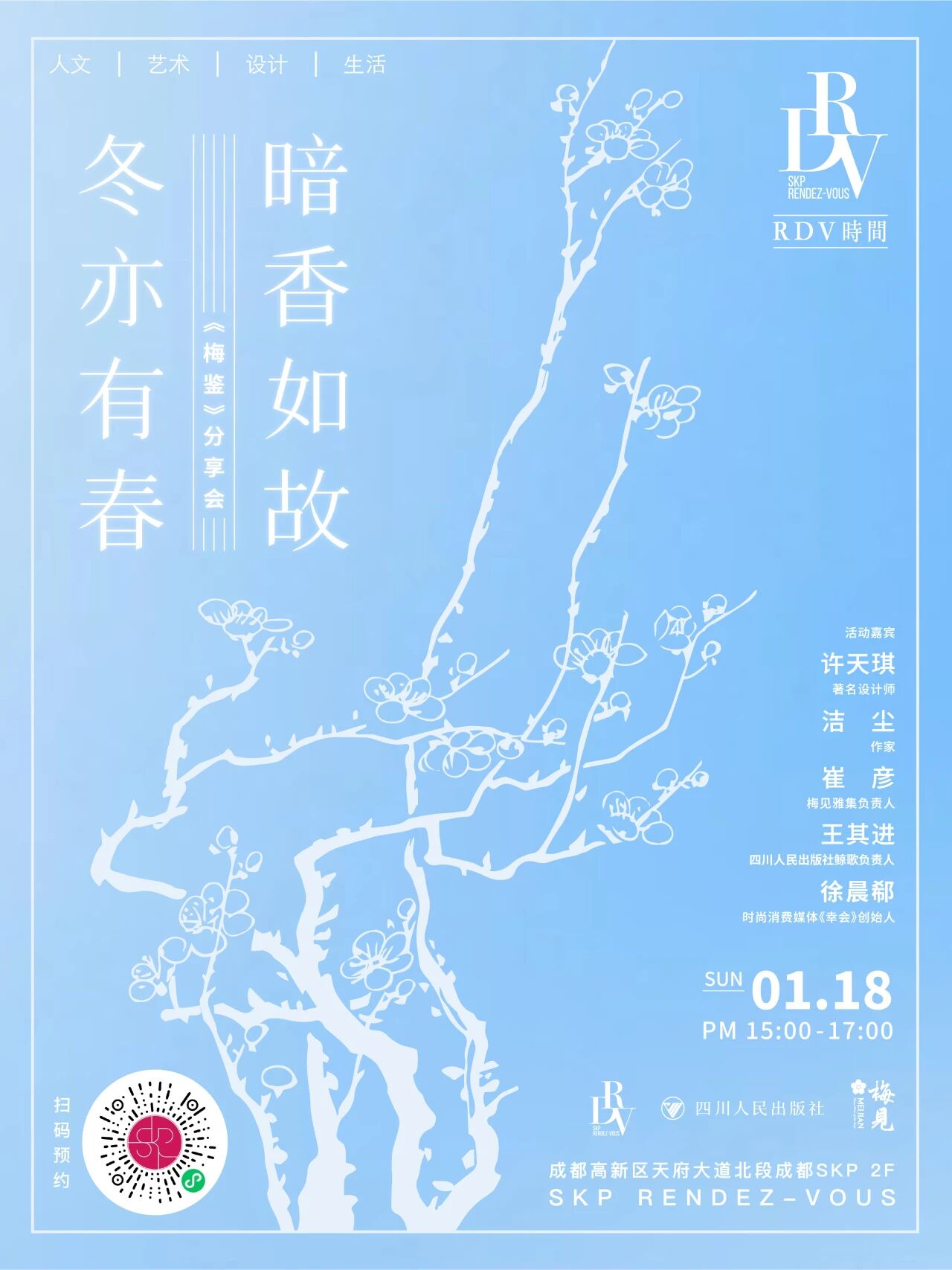本次活动汇聚文化、艺术、设计与出版领域嘉宾,从典籍、美学与当代生活等维度,解读跨越三千年的梅花意象与精神内涵,共同探讨传统文化在当代语境中的创新表达与价值转化,通过多元视角呈现梅花文化的时代意义,搭建传统与当代对话的交流平台。