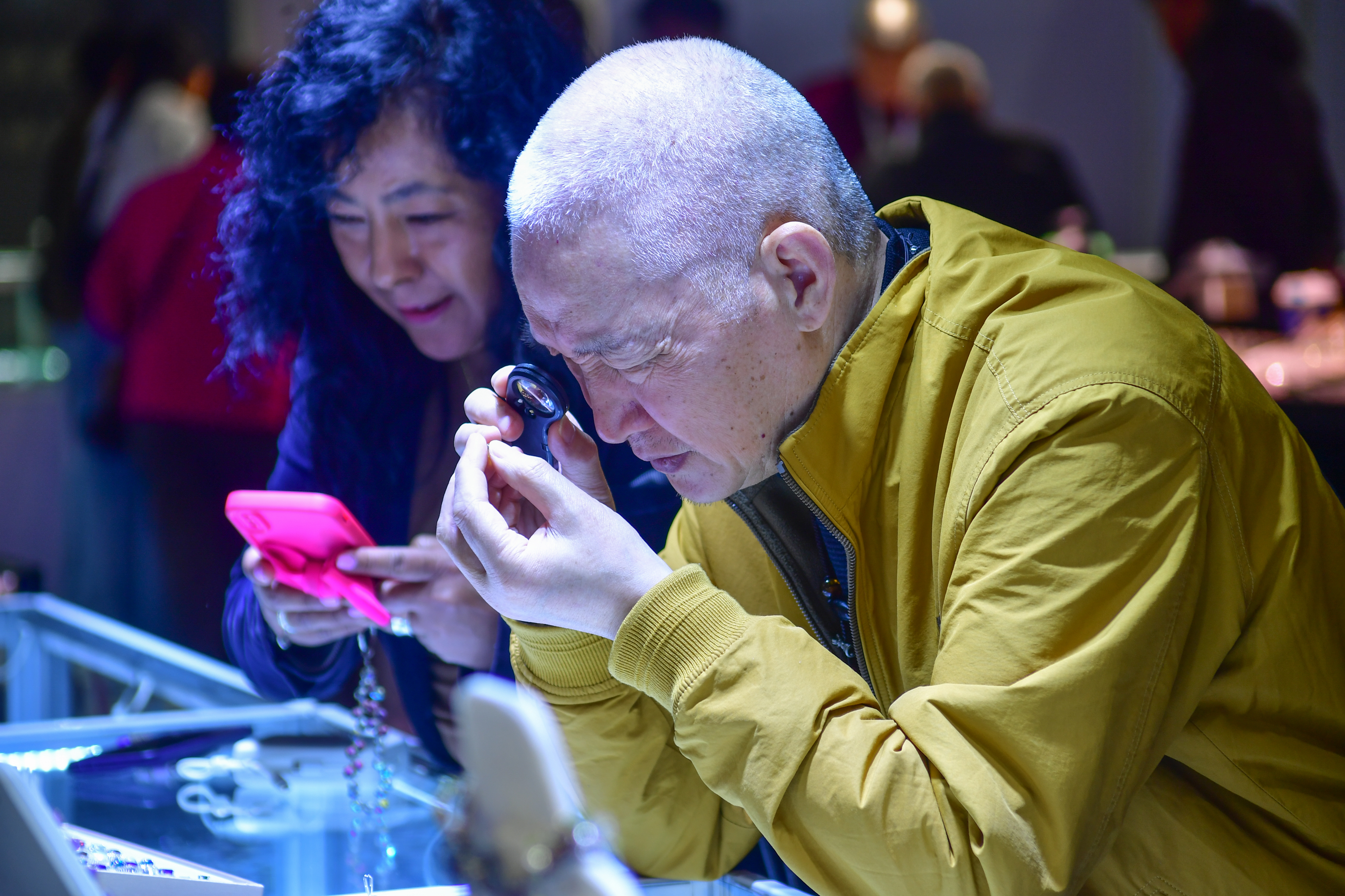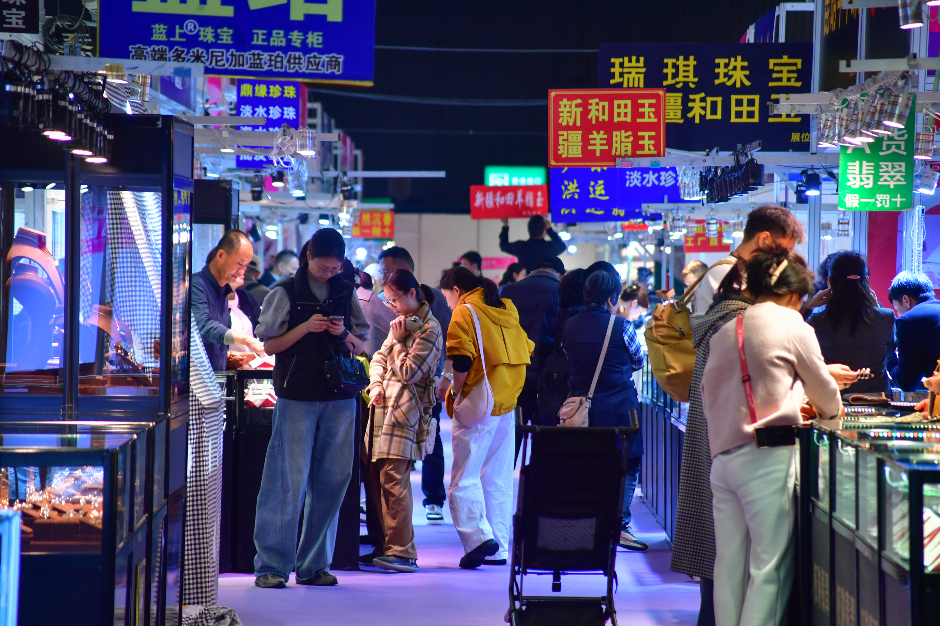 “一直想给家人选一件寓意好、品质有保障的玉石挂件,听说这里厂家直销,价格实在,还有权威机构现场鉴定,就特意赶在第一天来看看。”正在翡翠展位前仔细挑选的市民李女士表示。