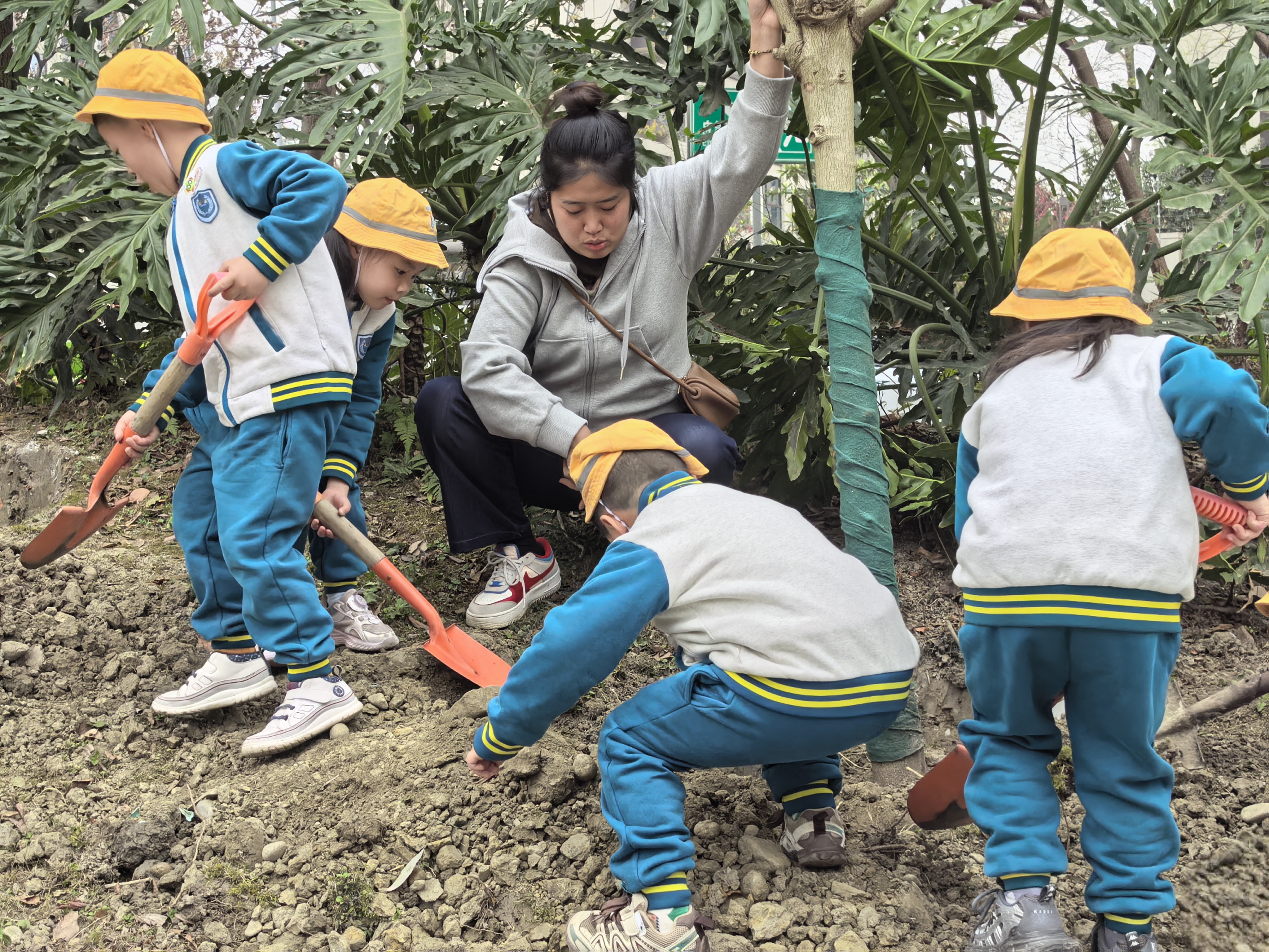 活动现场,孩子们在工作人员和老师的带领下,化身“小小护绿员”,兴致勃勃地投入植树活动中。大家两人一组、三人一队,分工协作,工作人员一边讲解树苗养护知识,一边教孩子们植树,现场欢声笑语不断。合源幼儿园小朋友优优擦着额头的汗珠,兴奋地说:“今天我种了小树,虽然有点累,但我特别开心,以后我会经常来看它,给它浇水,和它一起长高。”