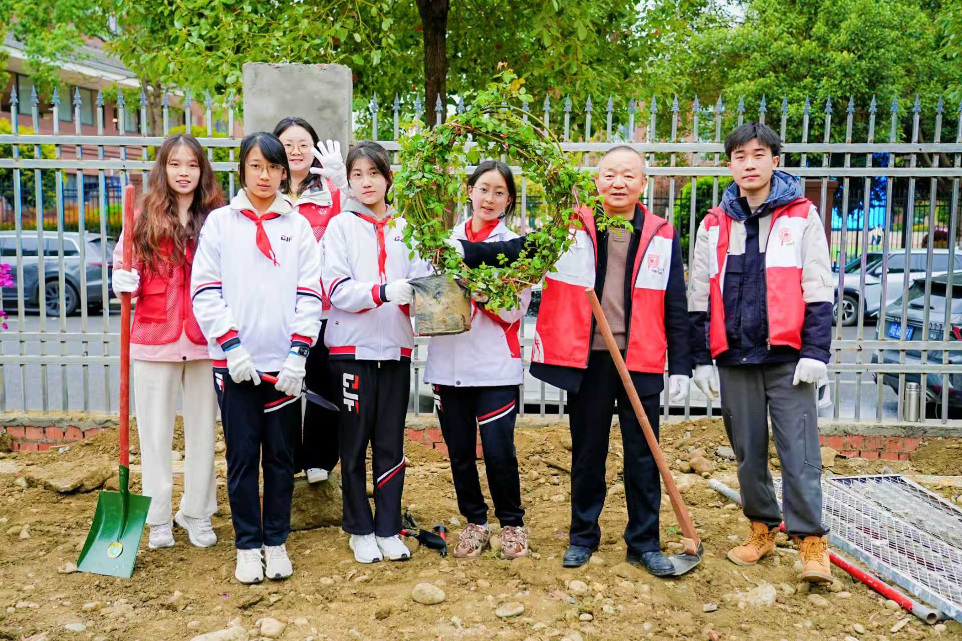 上午10时,学生代表宣读《绿色环保倡议书》,拉开活动序幕。科创社区相关负责人带领全体参与者庄严宣誓,铭记环保使命,践行植绿护绿责任。随后,社区党员、居民志愿者、学校师生、企业职工分工协作,让数株蔷薇与三角梅花苗在春雨中“安家落户”,捐赠牌同步安装完成。后续社区将联动学校完善认养机制,以责任守护绿化成果,让绿色持续生长。