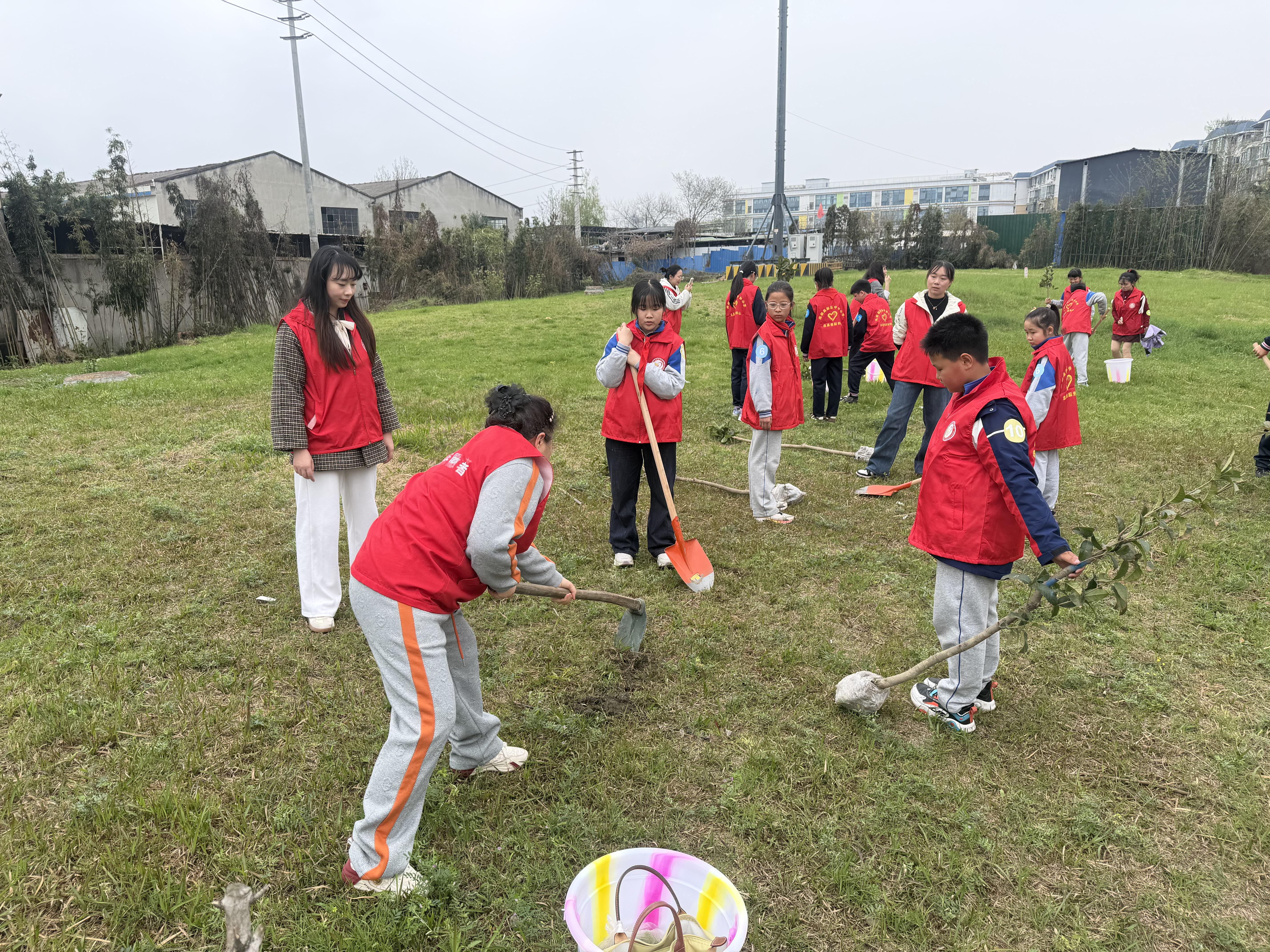 仁和社区突出红色引领,联合辖区小学开展主题党日活动,青少年在党员志愿者指导下分工协作完成植树,在实践中接受生态文明与劳动教育。