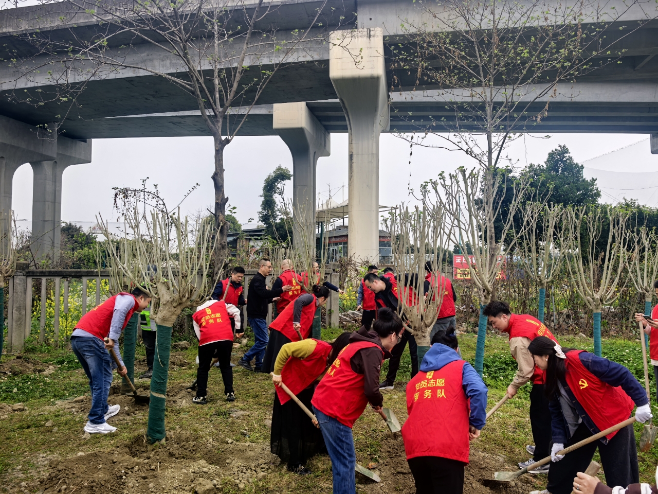 党建联建植树添绿 社校企携手美化家园