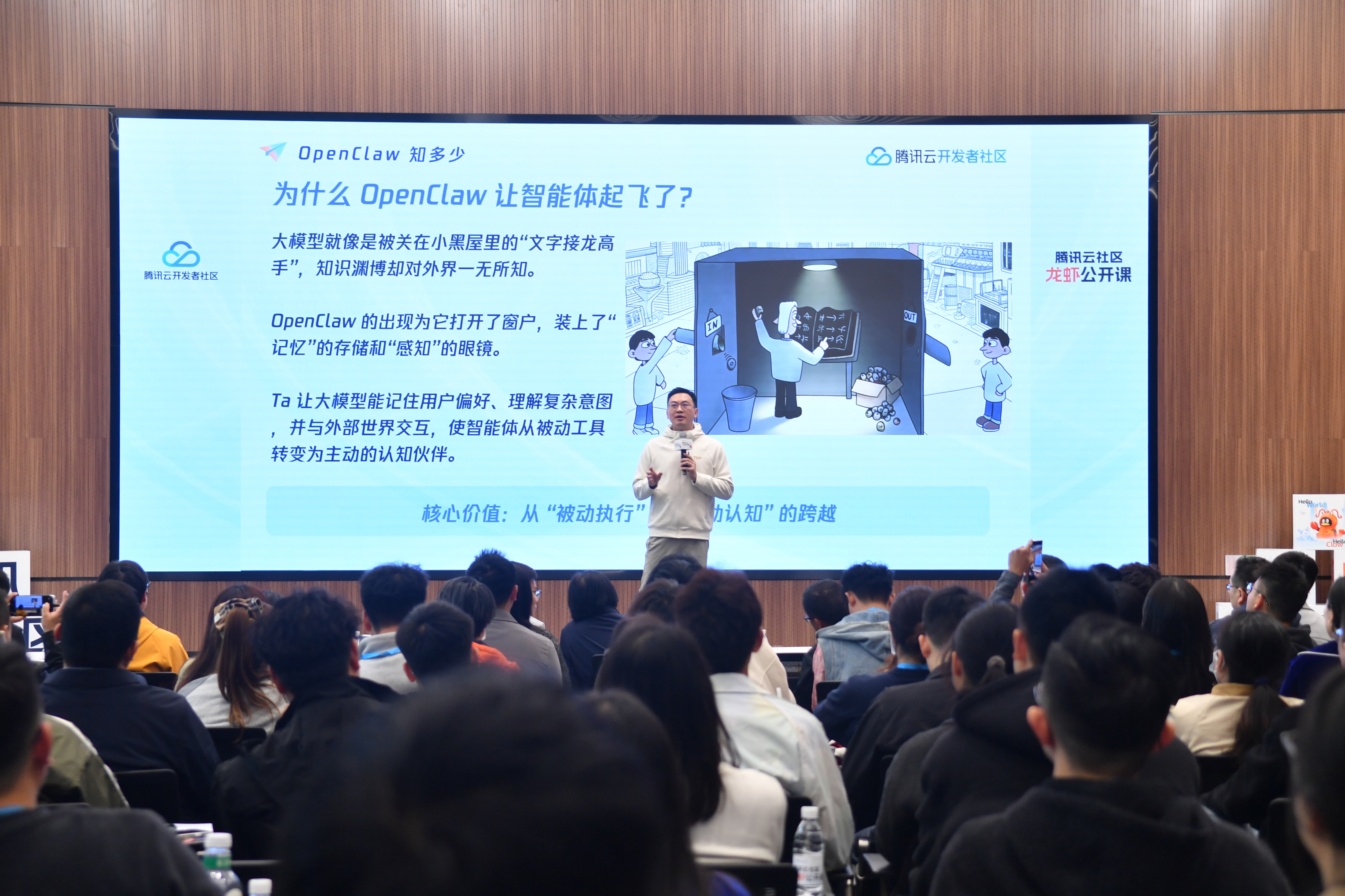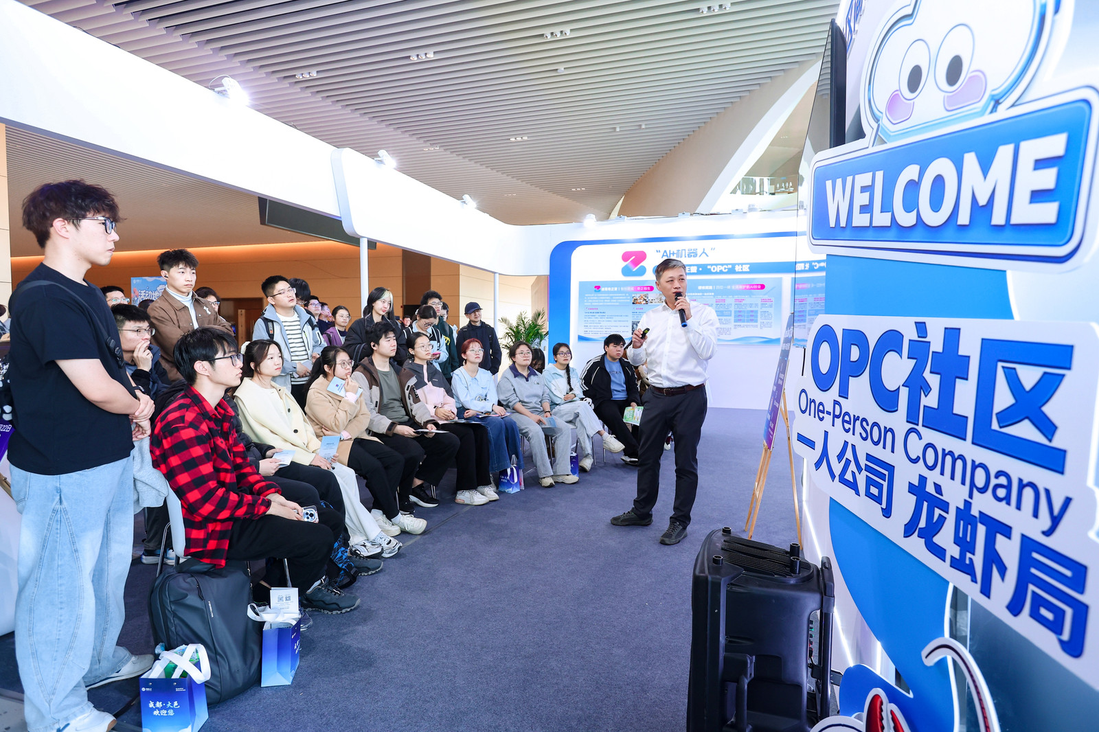什么是OPC?它指的是在人工智能技术支持下,由个人创业者独立完成全链路业务闭环的新型创业组织形态,通过AI工具的加持,个人创业者如同带领一支虚拟团队,实现“单人成军”。现场正在进行的“安全养龙虾”活动分享,吸引了不少“超级个体”创业者的关注。