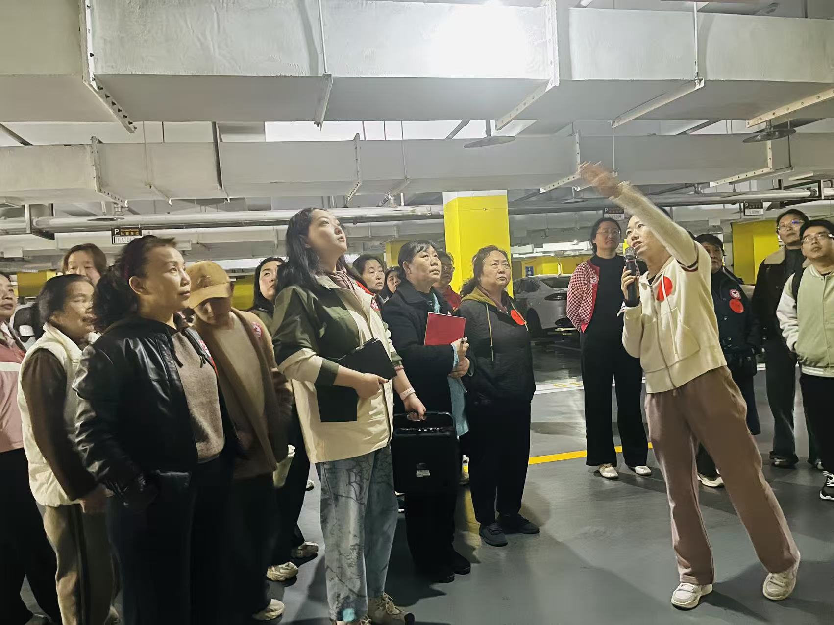 参训人员首站走进上海花园小区,实地了解困扰居民长达20年的车库改造项目。小区志愿者骨干陈芳介绍说,面对车库漏水破损、墙面老化等“老大难”问题,2024年她牵头组织26名热心志愿者,在社区统筹支持下,全程参与居民沟通、资源对接、资金筹措与质量监管,成功推动改造落地。如今,车库不仅解决了漏水和扬尘问题,还实现无障碍通行,切实回应了各类居民的出行需求。