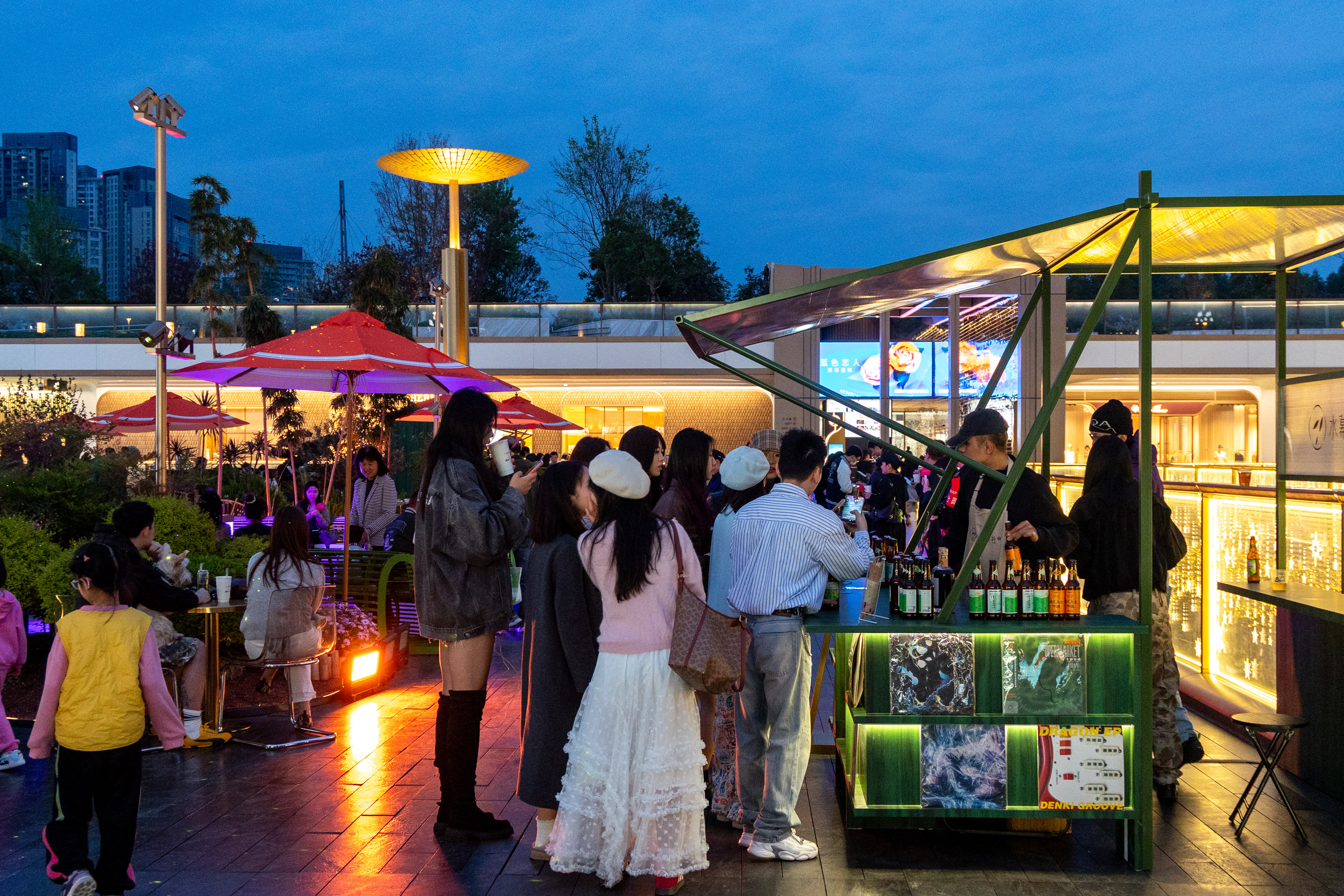 日暮降临后,场地立即变身为活力满满的潮流派对现场。激昂的电子音乐取代白日的闲适氛围,专业DJ登台打碟,用动感节奏点燃全场氛围。从午后清茶到夜间精酿与电音派对的无缝衔接,让参与者在一日之内便能沉浸式感受成都从恬静到热烈的双面城市气质。