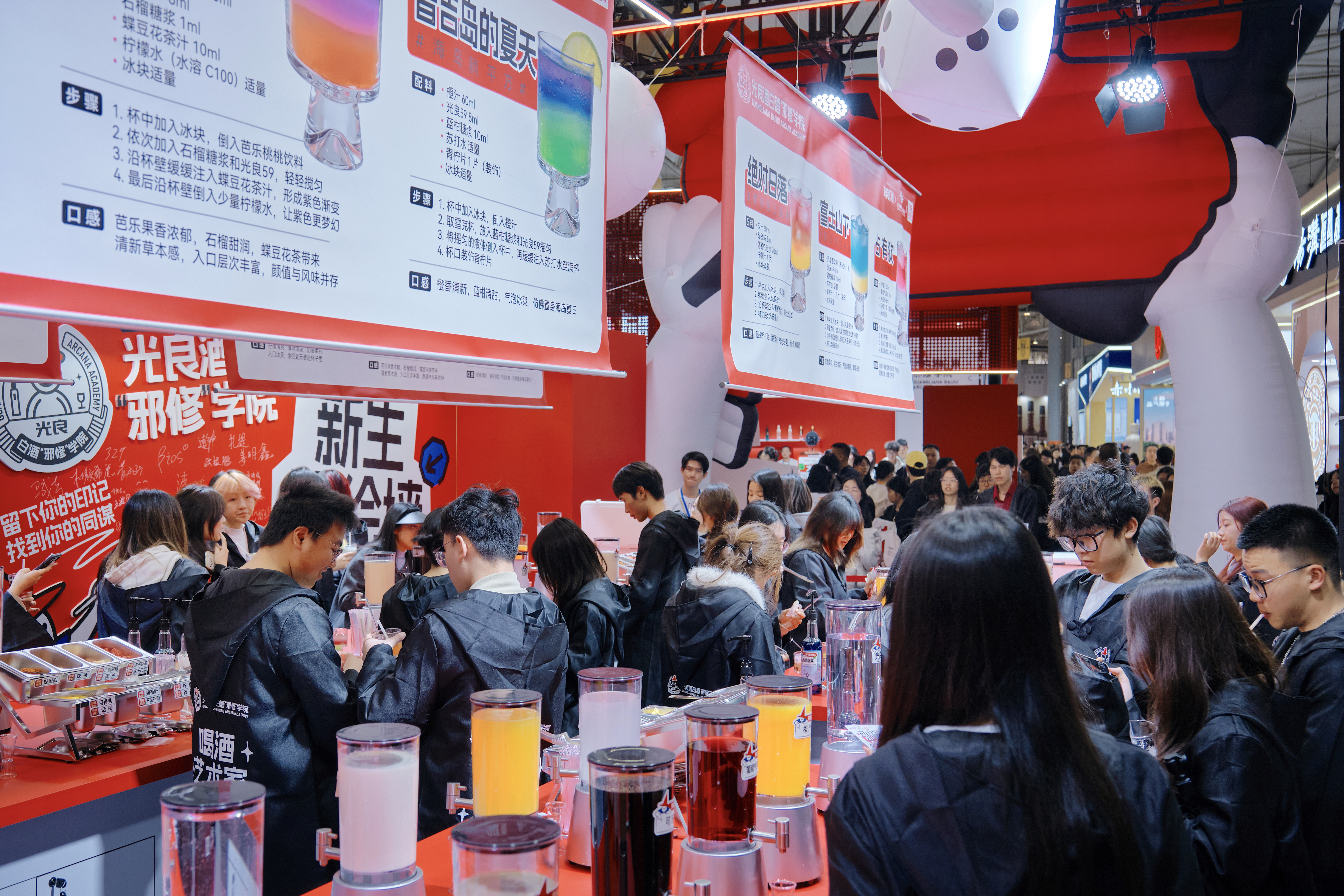 活动现场人气十足,消费者与潮流爱好者络绎不绝:有人在茶台前静心观摩茶艺表演,有人手持特色茶饮于水幕旁打卡留念,还有人跟随电子音乐的节奏尽情律动,勾勒出一幅传统与现代交融、闲适与活力共生的生动图景。