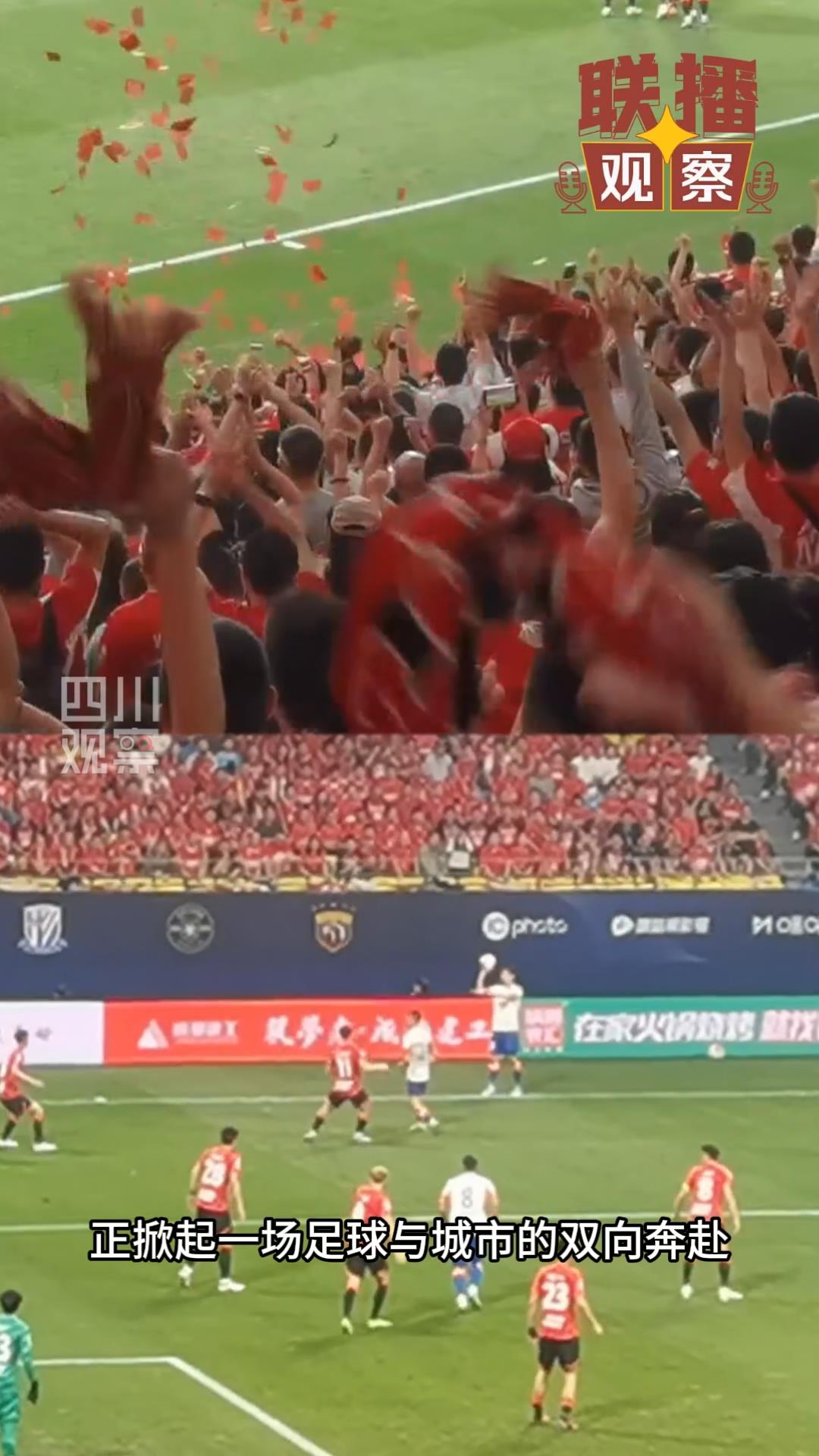 而与此同时,在成都的另一边,凤凰山红潮正掀起一场足球与城市的双向奔赴。“雄起”响彻凤凰山,一票难求的赛场上,来自全国各地的球迷们彻底在成都燃了起来。据说,连正在直播的四川观察也进不去成都蓉城主场,惨遭直播间10万人“嘲讽”。