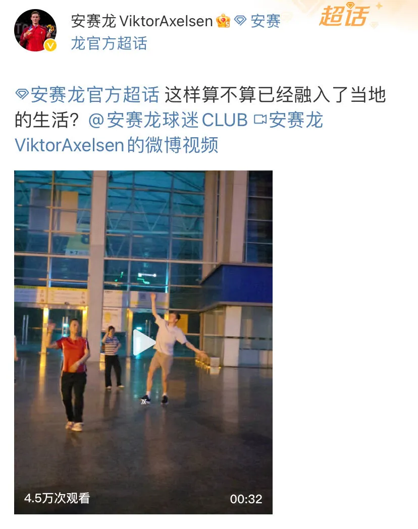 成都2024汤尤杯期间,羽坛“一哥”安赛龙在社交媒体上晒出自己在四川街头跳广场舞的视频并配文:“完美融入当地生活,但是好像拉低了舞蹈队的平均水平。”在接受媒体采访时,他用“十级中文”说:“在这里逛逛,享受中国的气候、环境,非常喜欢。”第一次来到中国的汤尤杯美国教练Ahlawat Abhishek惊讶地发现:“成都之行改变了我对中国的看法。”