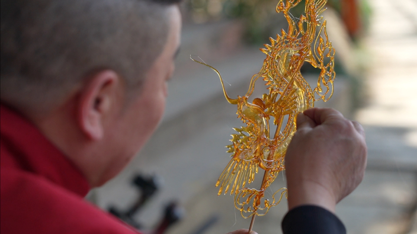 今年33岁的吴毅在非遗传承人中算是“年轻辈”。当开始系统学习糖画技艺后,他便以极高的标准严格要求自己,在一次次练习之中总结经验、摸索窍门,现在的他已然是一位名副其实的糖画“老师傅”。